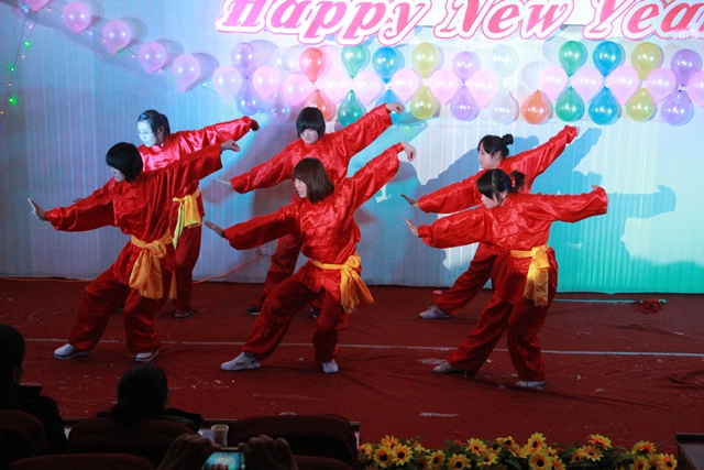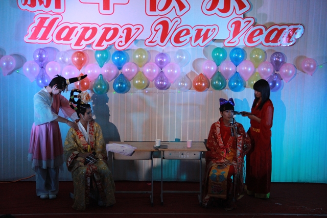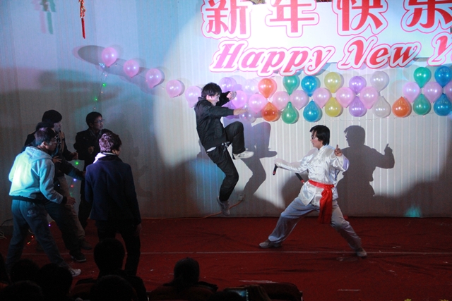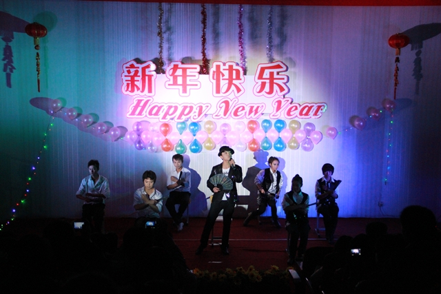 我系趙磊老師的薩克斯獨(dú)奏節(jié)奏明朗,富有磁力,優(yōu)美的旋律深深地吸引了全體觀眾。12級光熱班的張新輝,張一凡等同學(xué)反串《甄嬛傳》令現(xiàn)場的觀眾捧腹大笑。一首《祝?!返睦收b牽掛了所有觀眾,武術(shù)《中國功夫》令得全場驚呼,舞蹈《江南style》的精彩演出吸引了所有人的眼球。最后晚會在《同一首歌》的大合唱中緩緩落幕。