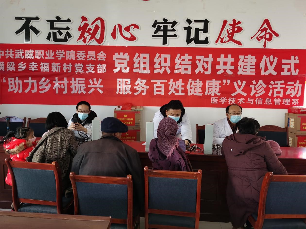 為深入學(xué)習(xí)宣傳貫徹黨的十九屆六中全會精神及武威市第五次黨代會精神,緊緊圍繞鄉(xiāng)村振興戰(zhàn)略全力落實(shí)健康扶貧等惠民政策,12月10日,醫(yī)學(xué)技術(shù)與信息管理系黨總支組織黨員和教師到古浪縣橫梁鄉(xiāng)幸福新村、康寧新村開展“助力鄉(xiāng)村振興,服務(wù)百姓健康”義診活動。