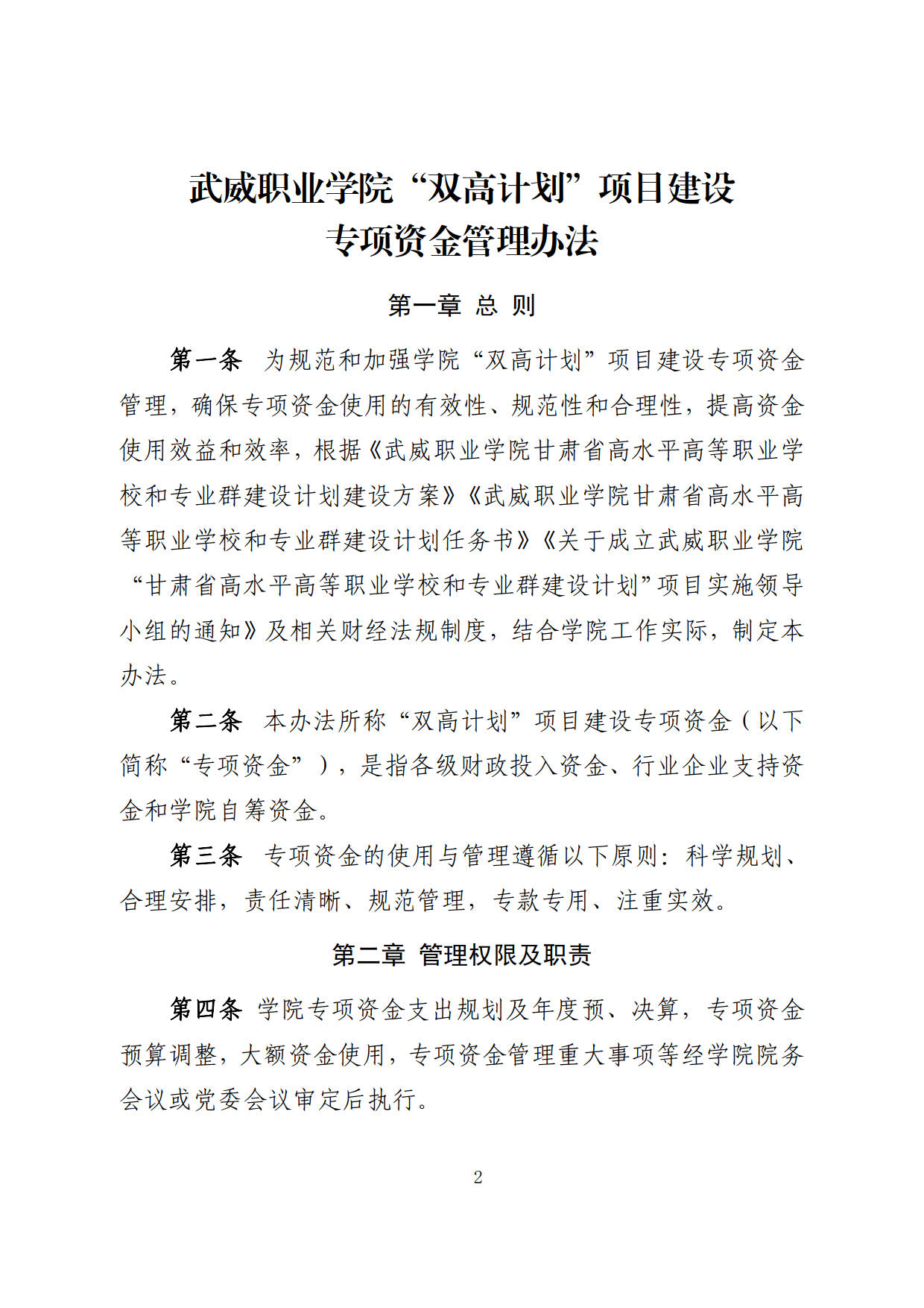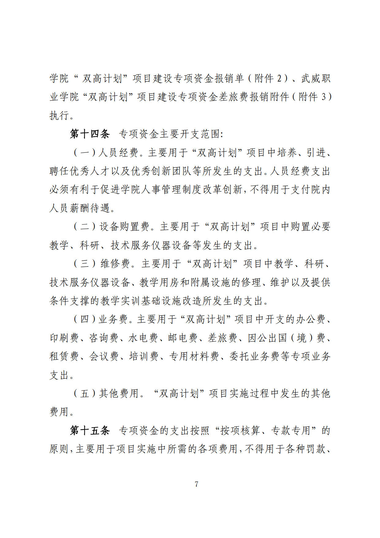 關于印發(fā)《武威職業(yè)學院“雙高計劃”項目建設專項資金管理辦法》的通知