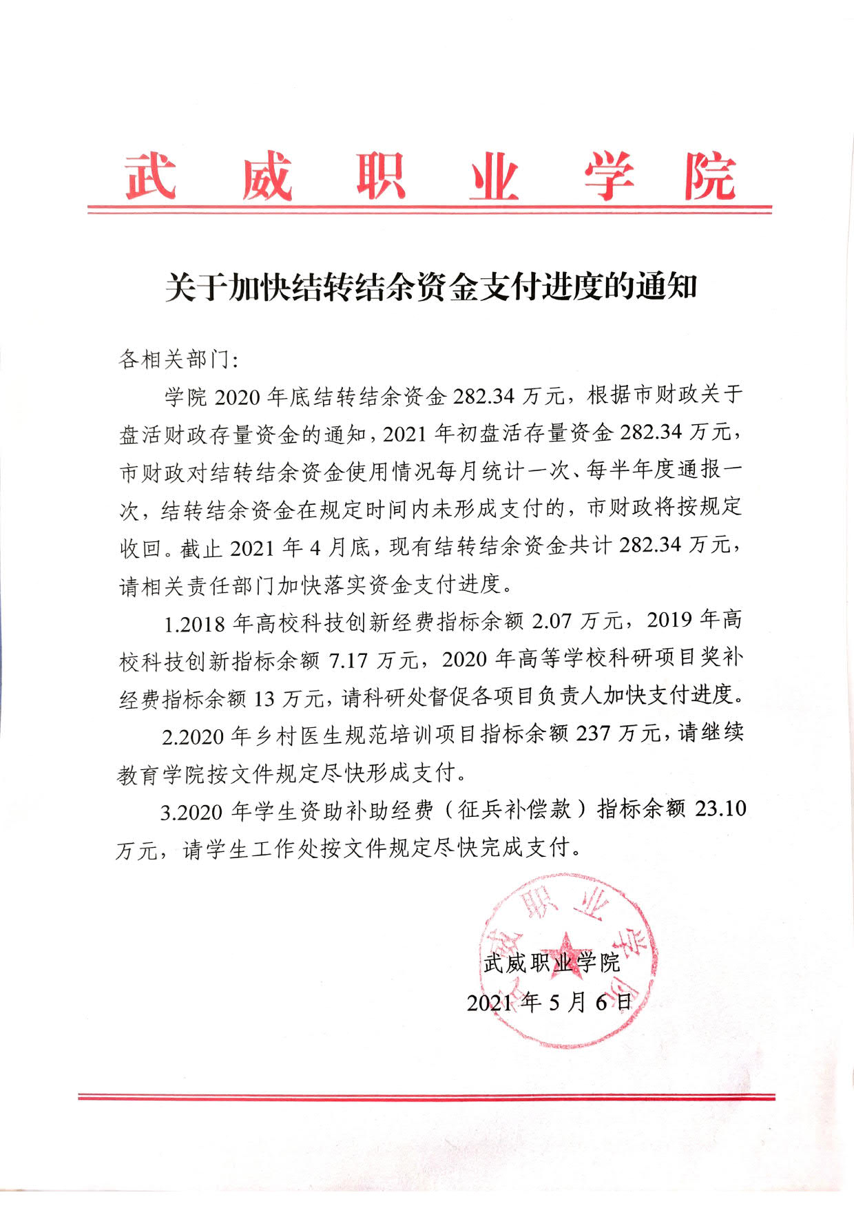 關于印發(fā)《武威職業(yè)學院全面實施預算績效管理辦法》的通知