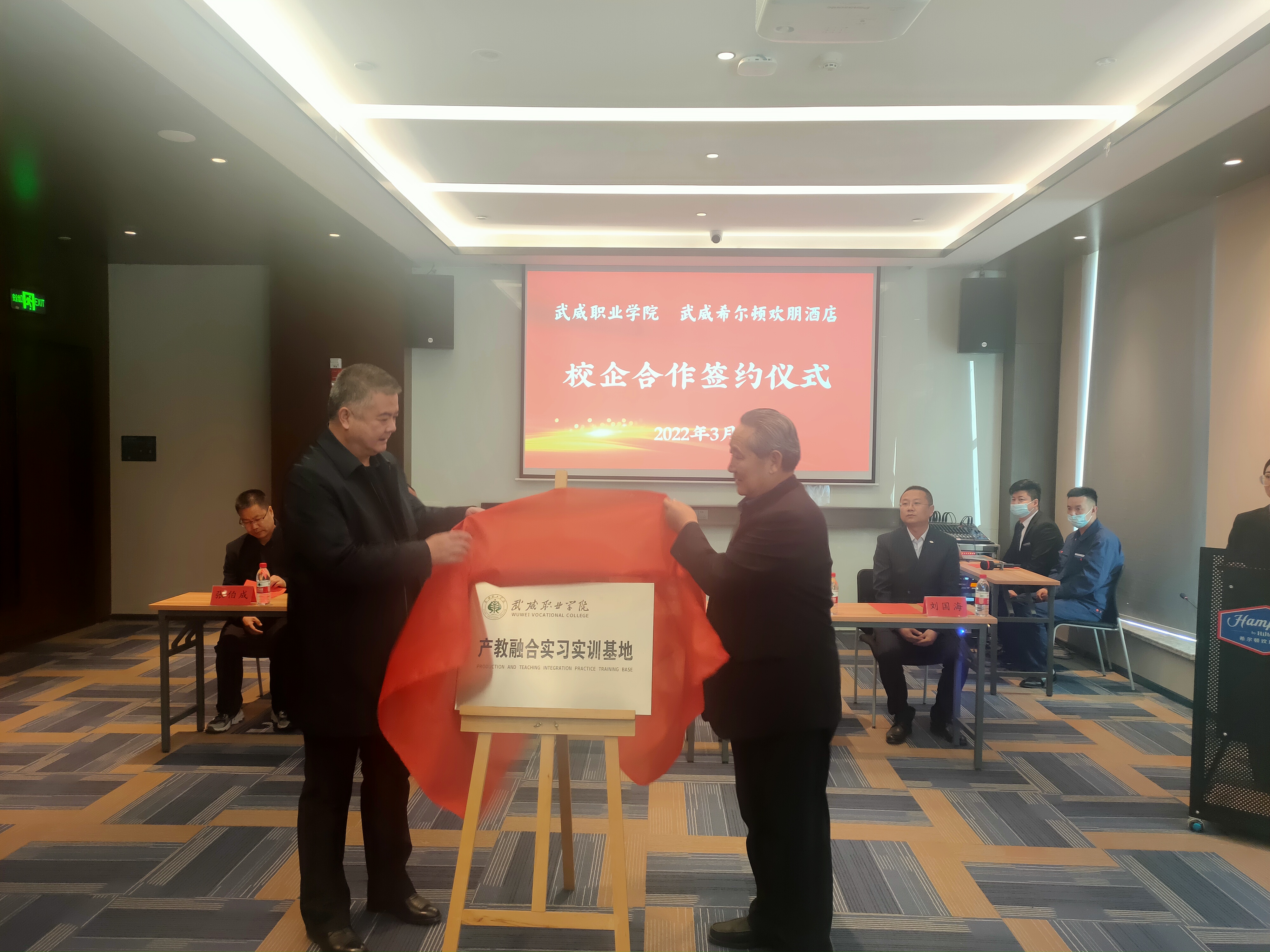 為深入貫徹落實教育部2022屆普通高校畢業(yè)生就業(yè)創(chuàng)業(yè)網(wǎng)絡(luò)視頻會議精神,統(tǒng)一思想,提高認(rèn)識,服務(wù)學(xué)院“雙高計劃”建設(shè),3月2日,學(xué)院與武威希爾頓歡朋酒店舉行校企合作揭牌暨簽約儀式,副校長王守云代表學(xué)院出席簽約儀式。