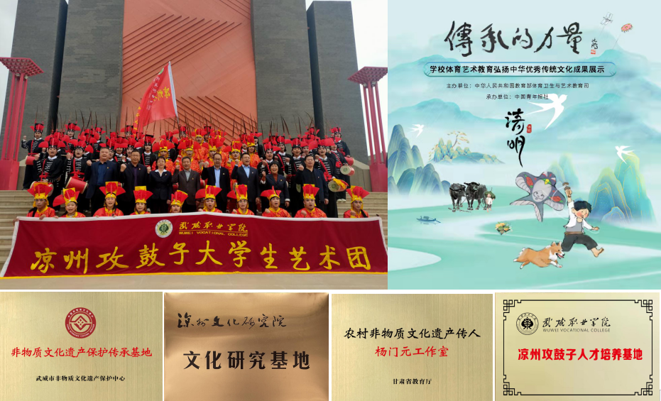 近年來(lái),學(xué)校全力推進(jìn)“雙高計(jì)劃”項(xiàng)目建設(shè),組織成立了武威職業(yè)學(xué)院涼州攻鼓子大學(xué)生藝術(shù)團(tuán),聘請(qǐng)國(guó)家級(jí)非遺代表性傳承人楊門(mén)元親傳技藝,并開(kāi)展了系列展演活動(dòng),著力打造特色校園文化品牌,助推文化繁榮、社會(huì)文明的新武威和華夏文明傳承創(chuàng)新區(qū)建設(shè),服務(wù)鄉(xiāng)村振興戰(zhàn)略。