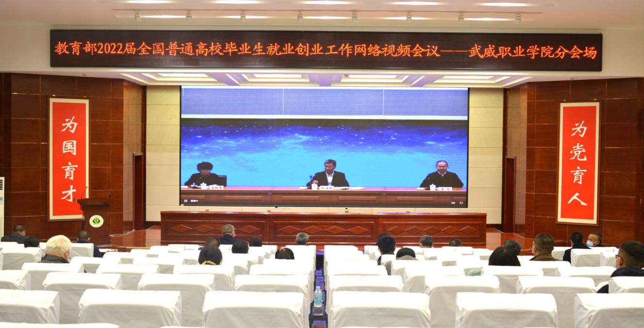 11月19日下午,教育部、人力資源社會(huì)保障部召開2022屆普通高校畢業(yè)生就業(yè)視頻會(huì)議。教育部黨組書記、部長懷進(jìn)鵬,人力資源社會(huì)保障部黨組成員、副部長李忠出席會(huì)議并講話,教育部黨組成員、副部長翁鐵慧主持會(huì)議。我院設(shè)立武威職業(yè)學(xué)院分會(huì)場,學(xué)院黨委書記、院長趙明,副院長王守云,招就處、雙創(chuàng)中心、學(xué)工處相關(guān)負(fù)責(zé)同志,各教學(xué)院系黨總支書記、主任、就業(yè)工作輔導(dǎo)員及畢業(yè)班班主任共計(jì)86人,在學(xué)院學(xué)生發(fā)展中心菁英廳集中參加網(wǎng)絡(luò)視頻會(huì)議。