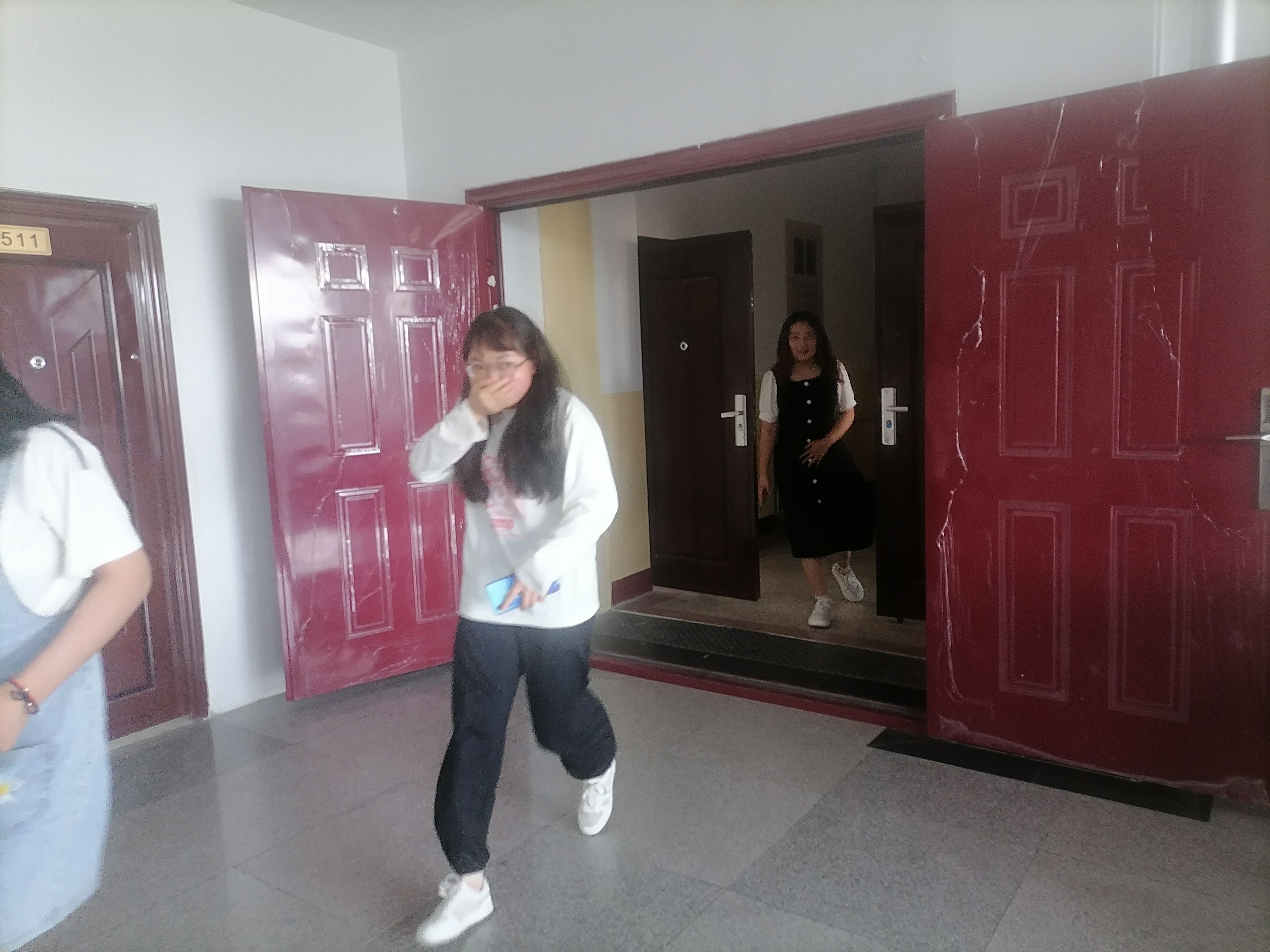 ? ?下午16:50隨著警報的響起,煙霧彈的點燃,上課老師組織學(xué)生疏散,各班學(xué)生在老師們的指揮下,按照指定路線,貓著腰,用手、袖口捂著嘴鼻迅速有序地進(jìn)行緊急疏散,全體師生撤離到安全地帶。為保證所有同學(xué)安全撤離,學(xué)生會成員迅速清點了各班級人數(shù),并像楊老師匯報。