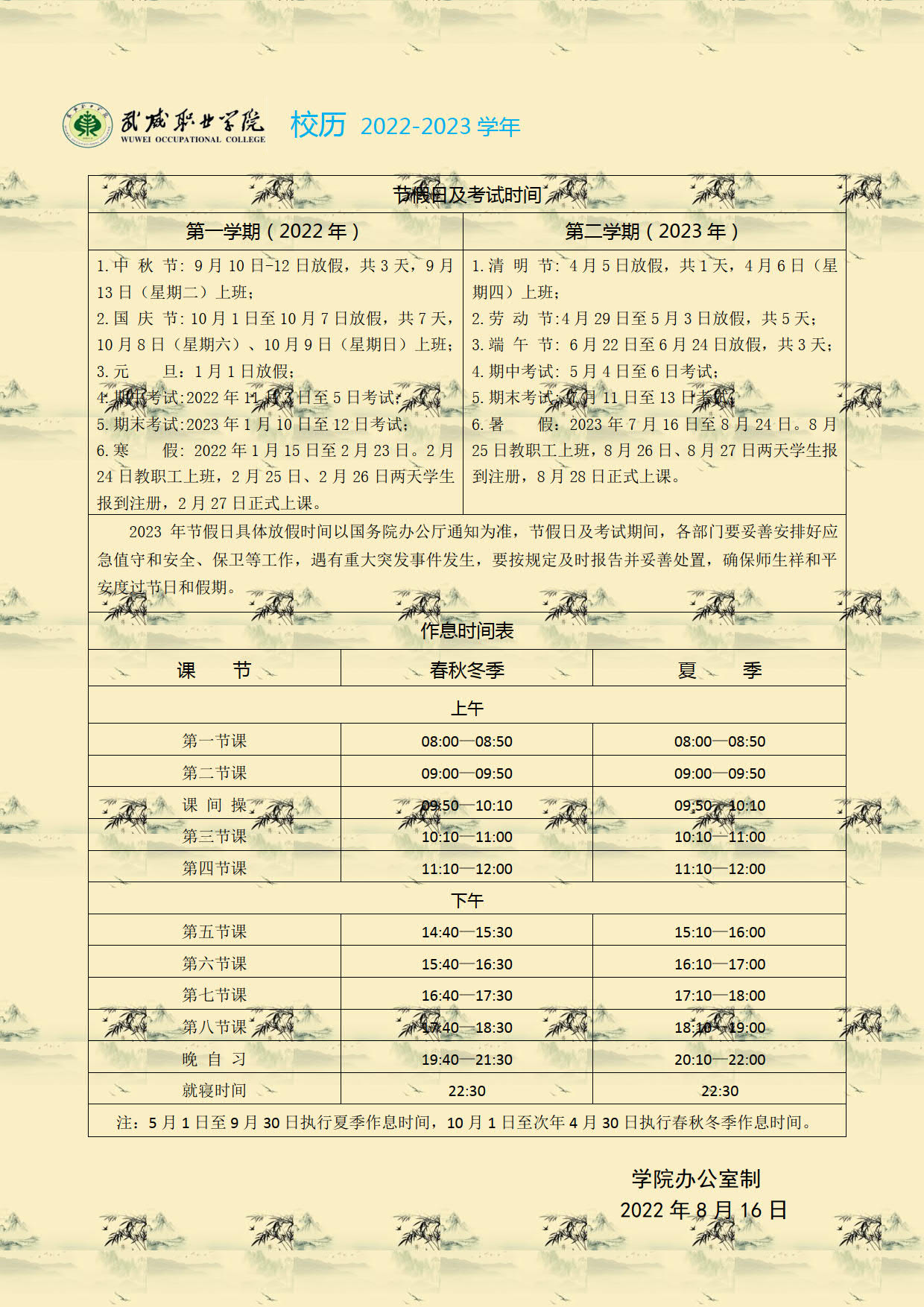 2022-2023學年校歷