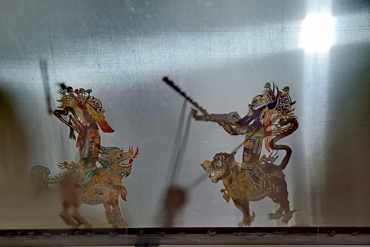皮影戲俗稱燈影戲,是中國古老的戲劇形式之一。通過傳統(tǒng)老藝人精選上等牛皮,經(jīng)過刮、磨、洗、刻、著色等二十多道工序,手工雕刻3000余刀而成。隨著樂器伴奏和唱腔配合,一明一暗間,那一張張栩栩如生的皮影在老藝人的操縱下,便成為“一口敘還千古事,雙手對(duì)舞百萬兵”意趣盎然的活動(dòng)藝術(shù)形象了。