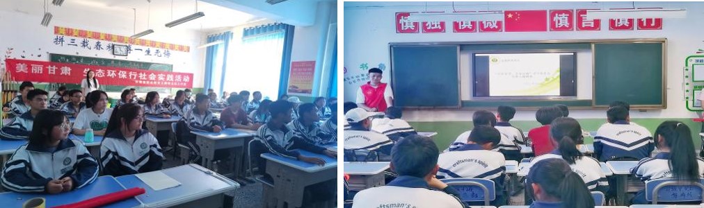 團隊成員在天祝職業(yè)中專教務(wù)處主任張健瑞教師的指引來到21級3班,志愿者通過播放PPT向同學(xué)們宣講了生態(tài)環(huán)保的重要性以及國家對于生態(tài)環(huán)保的做出工作部署及法律法規(guī),并且向同學(xué)們進行提問了生態(tài)環(huán)保知識、發(fā)放了調(diào)查問卷。