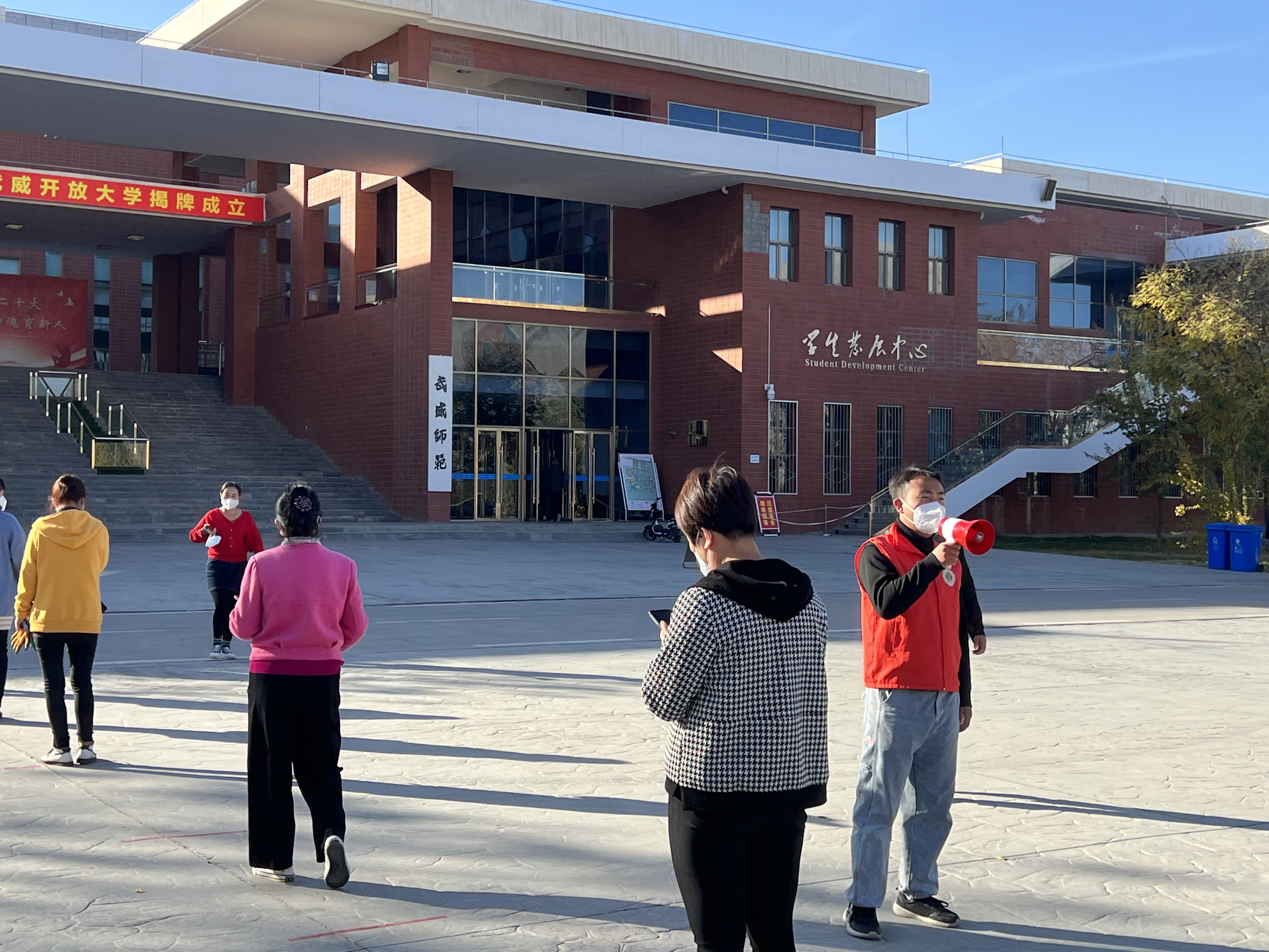 “您好,請測量體溫、掃場所碼?!薄罢埮宕骱每谡郑行蚺抨牎毙W生會的陶玲在學校食堂門口值班時不停地提醒著進出打飯的同學們,這也是她參加校園疫情防控以來每天講得最多的話。自10月13日涼州區(qū)實施臨時管控以來,學校各學生組織聞令而動,身穿“藍馬甲”積極投身校園疫情防控一線,用奉獻溫暖了這個秋天。
