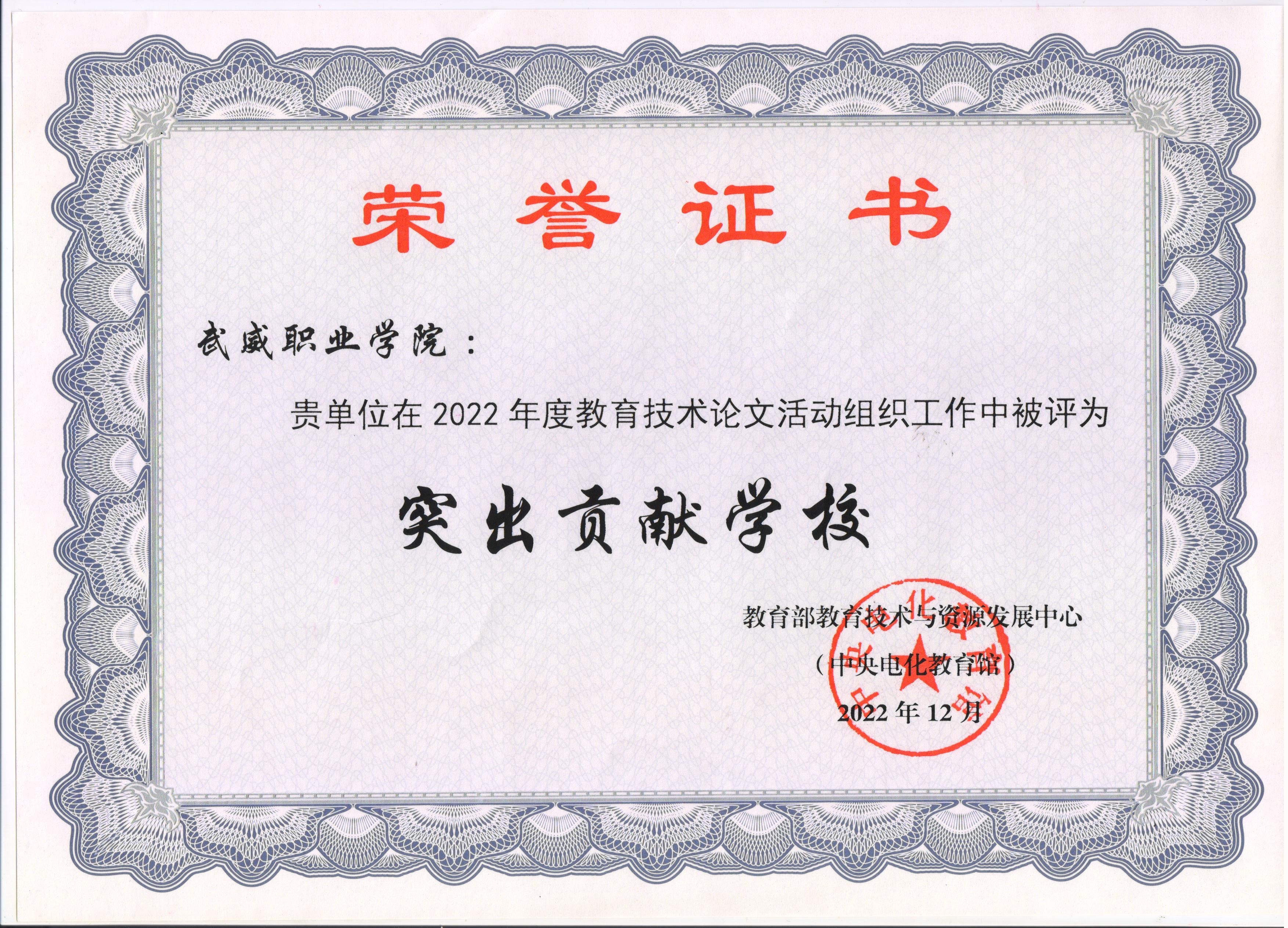 學(xué)校在2022年全國師生信息素養(yǎng)提升實(shí)踐活動(dòng)中被評(píng)為教育技術(shù)論文組織突出貢獻(xiàn)學(xué)校