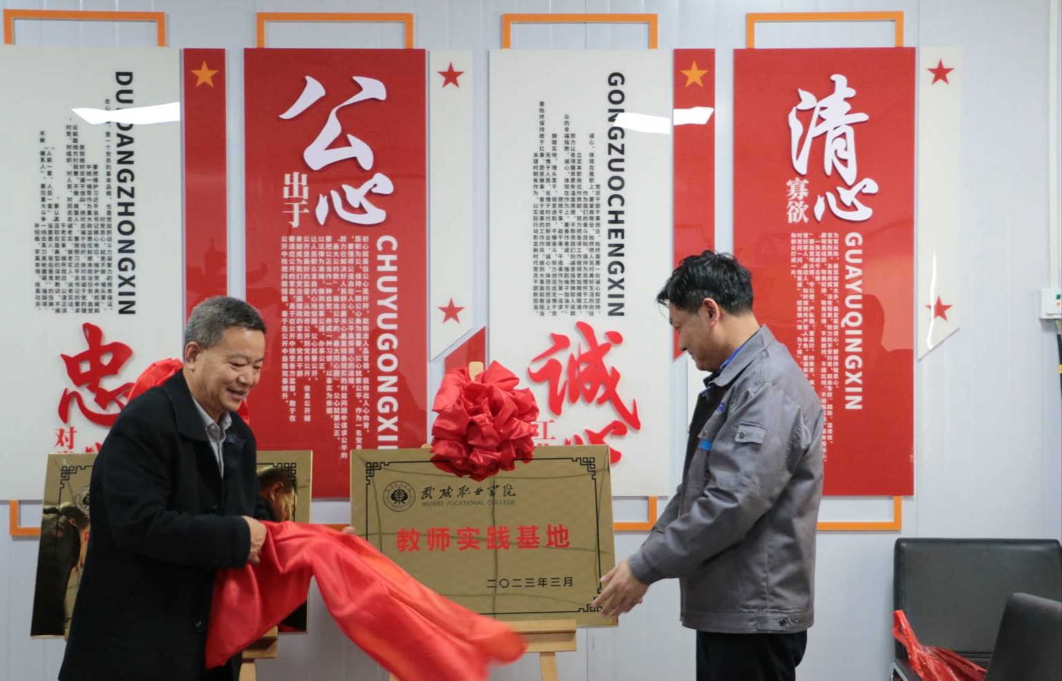 戴志敏和趙明為武威職業(yè)學(xué)院在應(yīng)物所武威園區(qū)的教師實踐基地和實訓(xùn)基地揭牌。