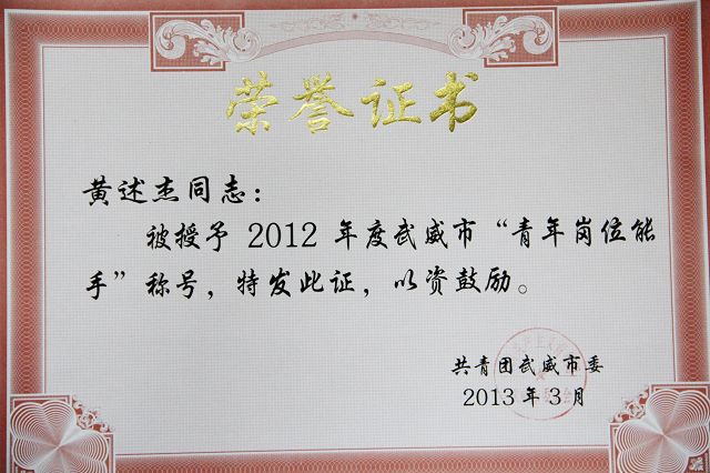 3月8日,在共青團(tuán)武威市二屆七次全委會(huì)上,團(tuán)市委表彰了2012年度先進(jìn)集體和個(gè)人,我系團(tuán)總支被評(píng)為“武威市五四紅旗團(tuán)支部”,系團(tuán)總支書記黃述杰老師被評(píng)為“武威市青年崗位能手”,11級(jí)光伏發(fā)電技術(shù)及應(yīng)用大專班張鳳鳳同學(xué)被評(píng)為“武威市優(yōu)秀共青團(tuán)員”。