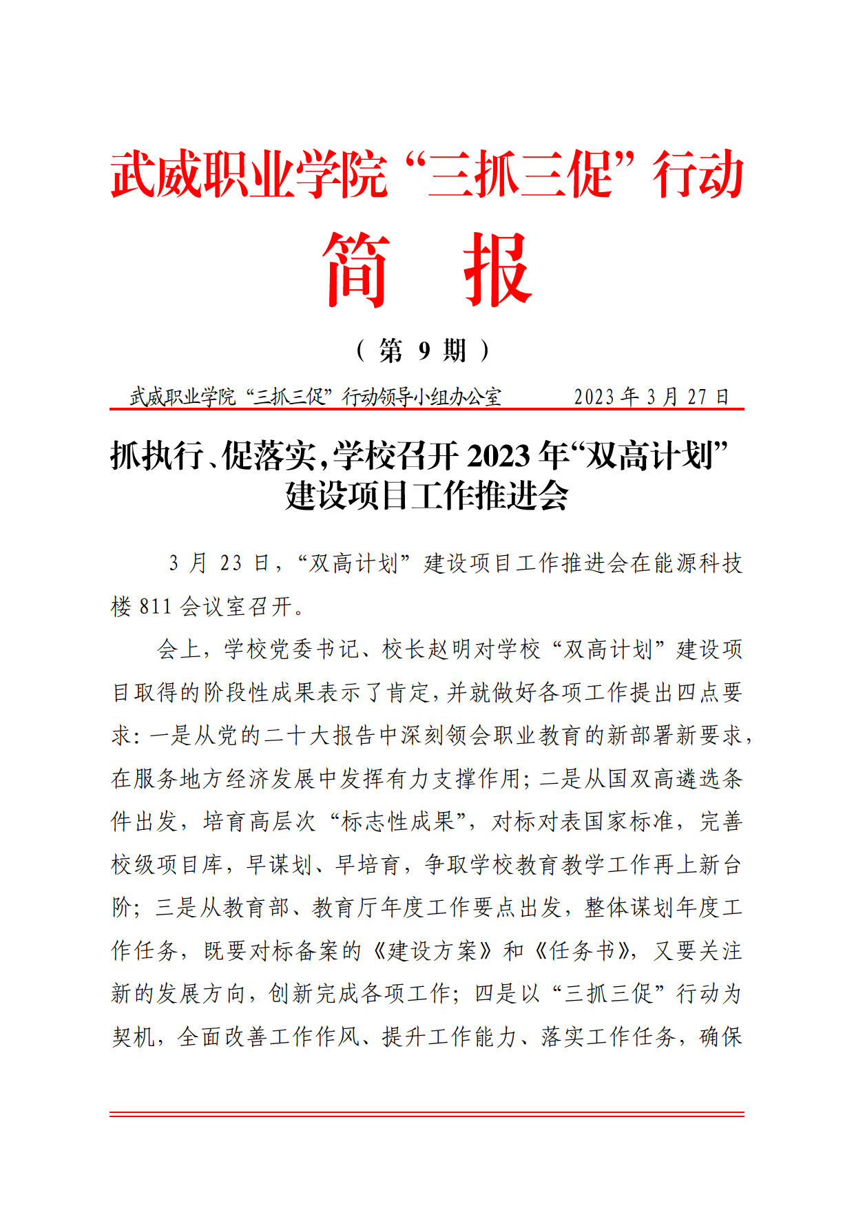 簡報第9期:抓執(zhí)行、促落實,學(xué)校召開2023年“雙高計劃”建設(shè)項目工作推進會