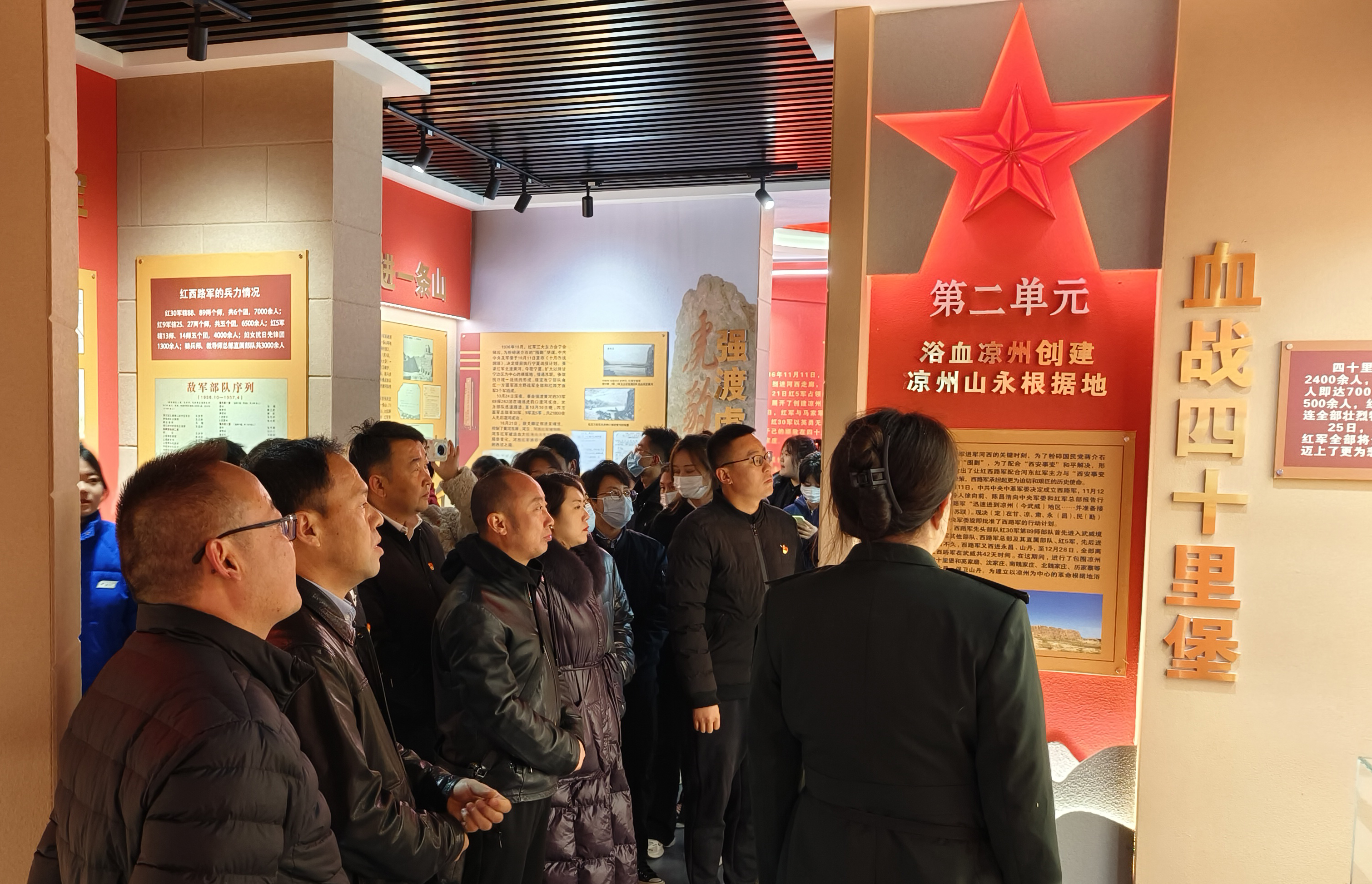 悼念儀式后,在講解員帶領(lǐng)下,大家有序參觀了紀(jì)念館,瞻仰了革命烈士生平事跡、史料和遺物,詳細(xì)了解了涼州戰(zhàn)役的歷史,莊嚴(yán)地重溫了入黨誓詞。