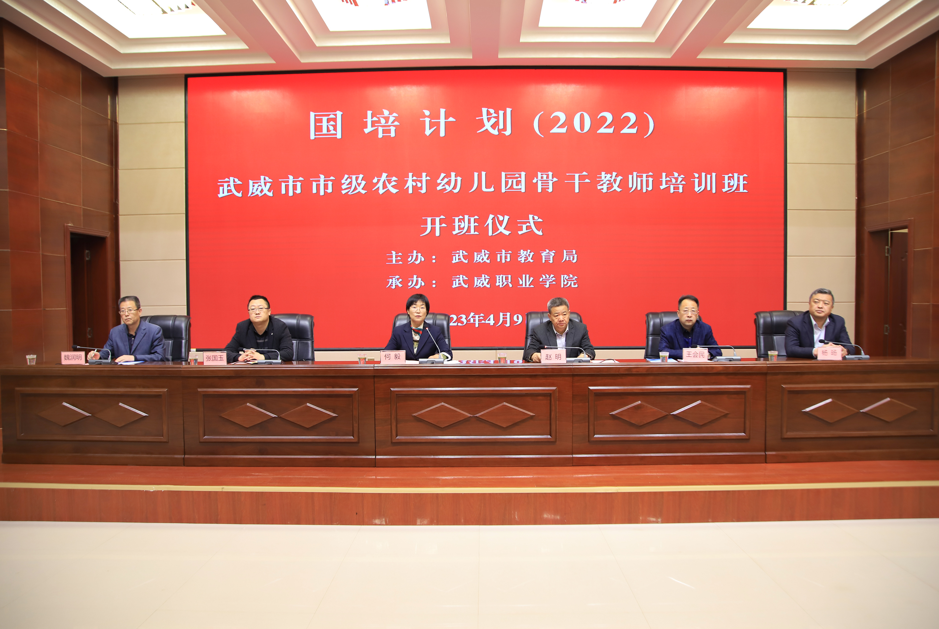 2023年4月9日上午,“國培計劃(2022)”武威市市級農(nóng)村幼兒園骨干教師培訓(xùn)班開班儀式在學(xué)院菁英廳舉辦,武威市教育局、武威職業(yè)學(xué)院領(lǐng)導(dǎo)及相關(guān)科室負(fù)責(zé)人參加開班儀式。