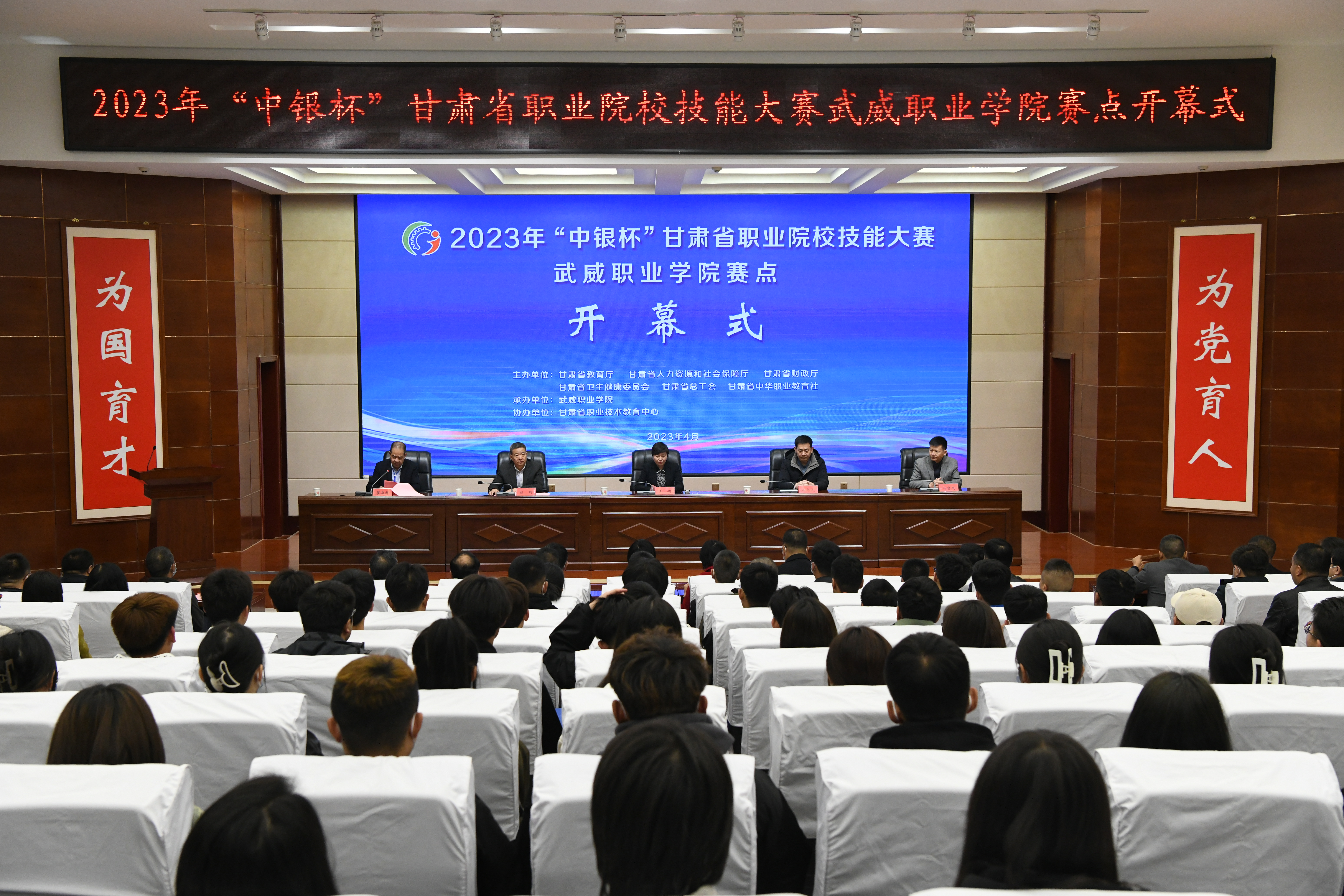 武威市教育局黨組書記、局長(zhǎng)王娟宣布2023年“中銀杯”甘肅省職業(yè)院校技能大賽武威職業(yè)學(xué)院賽點(diǎn)開(kāi)賽。