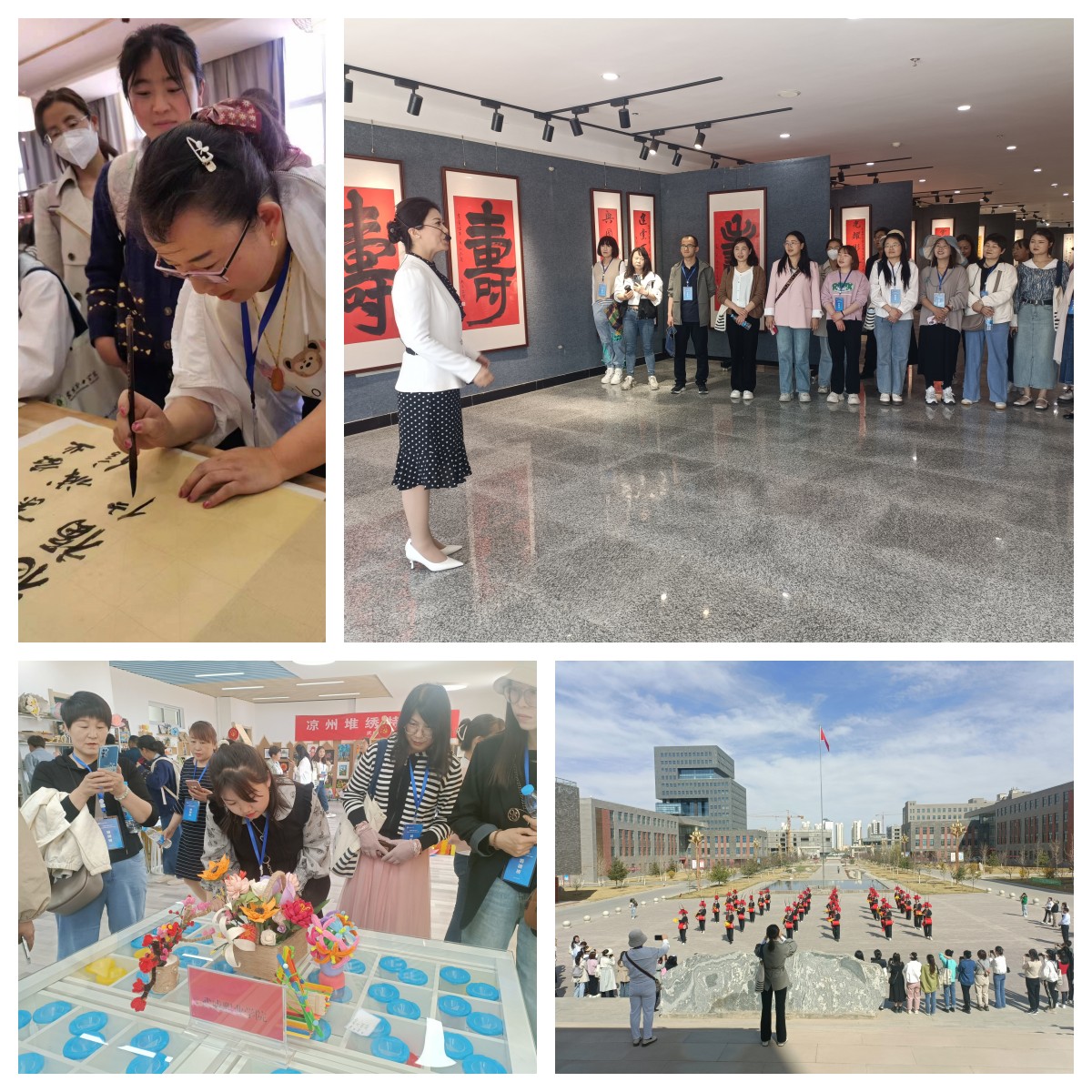 16日下午,培訓班組織學員觀摩學校學前教育專業(yè)實訓中心、紅色文化藝術館、傳統(tǒng)文化體驗中心、非遺體驗中心等場館。在講解老師的帶領下,學員們有感而發(fā),唱紅歌、彈鋼琴、練書法,使紅色教育理念在觀摩中得以升華,現(xiàn)場氣氛激情熱烈,學員們對學校的發(fā)展贊嘆不已,隨后,全體學員觀看涼州攻鼓子表演,并合影留念。