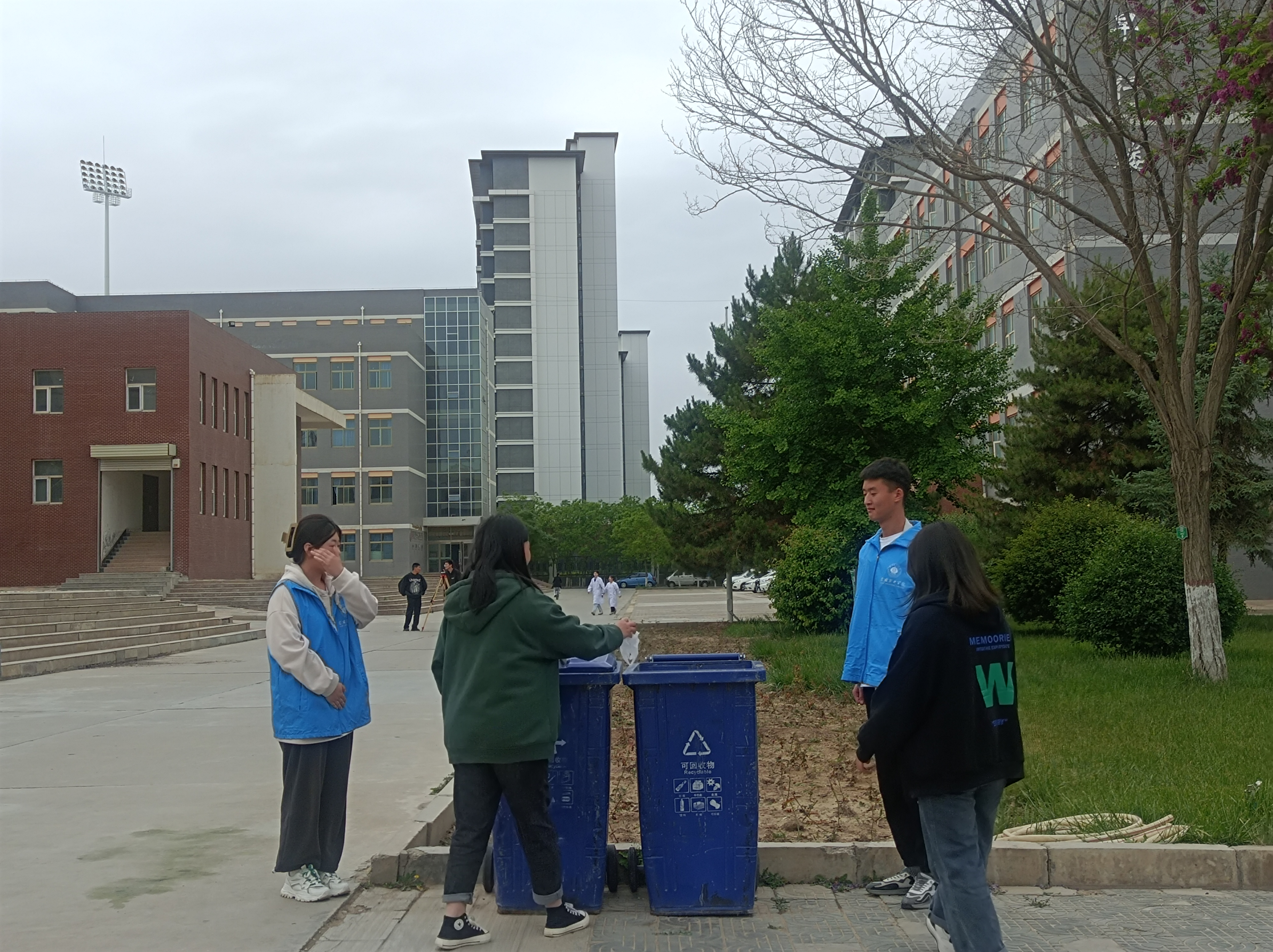 ? ? ? 志愿者們 積極參與生活垃圾分類宣傳,傳播“生態(tài)文明,從我做起"的生活理念,主動(dòng)做垃圾分類知識(shí)的宣傳者、文明生活理念的倡導(dǎo)者、垃圾分類收集的志愿者,以實(shí)際行動(dòng)帶動(dòng)身邊人參與生活垃圾分類和勞動(dòng)實(shí)踐中來(lái)。積極參加學(xué)校垃圾分類工作,從自身做起、從現(xiàn)在做起,正確分類垃圾,主動(dòng)糾正錯(cuò)誤的垃圾分類習(xí)慣,自覺將學(xué)習(xí)、工作、生活過(guò)程中產(chǎn)生的垃圾進(jìn)行分類收集和投放,不隨意丟棄。志愿者積極的奔走在校園每一個(gè)角落,引導(dǎo)同學(xué)們做好垃圾分類,為同學(xué)們樹立起垃圾分類的意識(shí)。