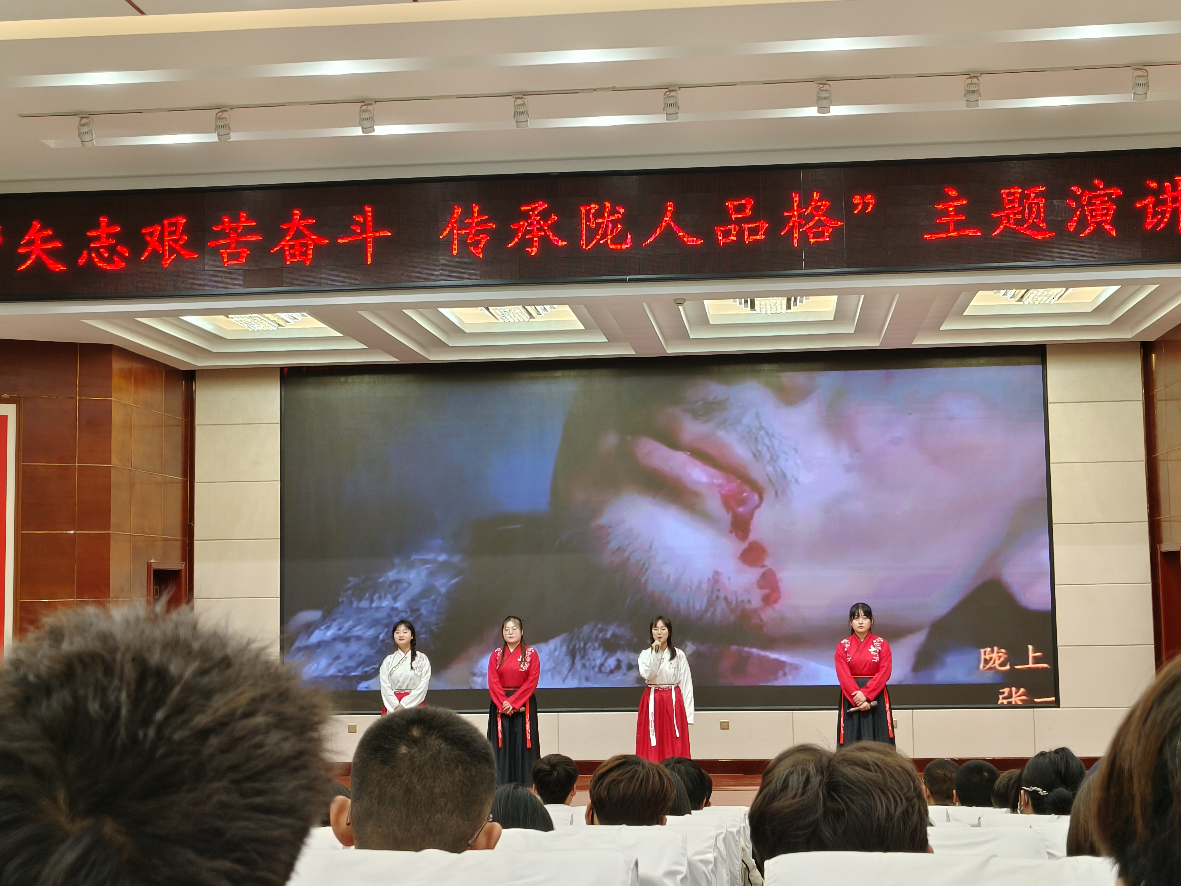 ? ? ? ?本次主題演講活動,不僅展示了同學(xué)們奮發(fā)向上的良好風(fēng)采,更激發(fā)了同學(xué)們愛黨愛國的熱情,發(fā)揮了良好的育人作用。我校將以“矢志艱苦奮斗 傳承隴人品格”青年主題文化活動為契機(jī),以同學(xué)們喜聞樂見的活動形式為載體,引導(dǎo)同學(xué)們傳承隴人品格,爭做新時代的好青年。