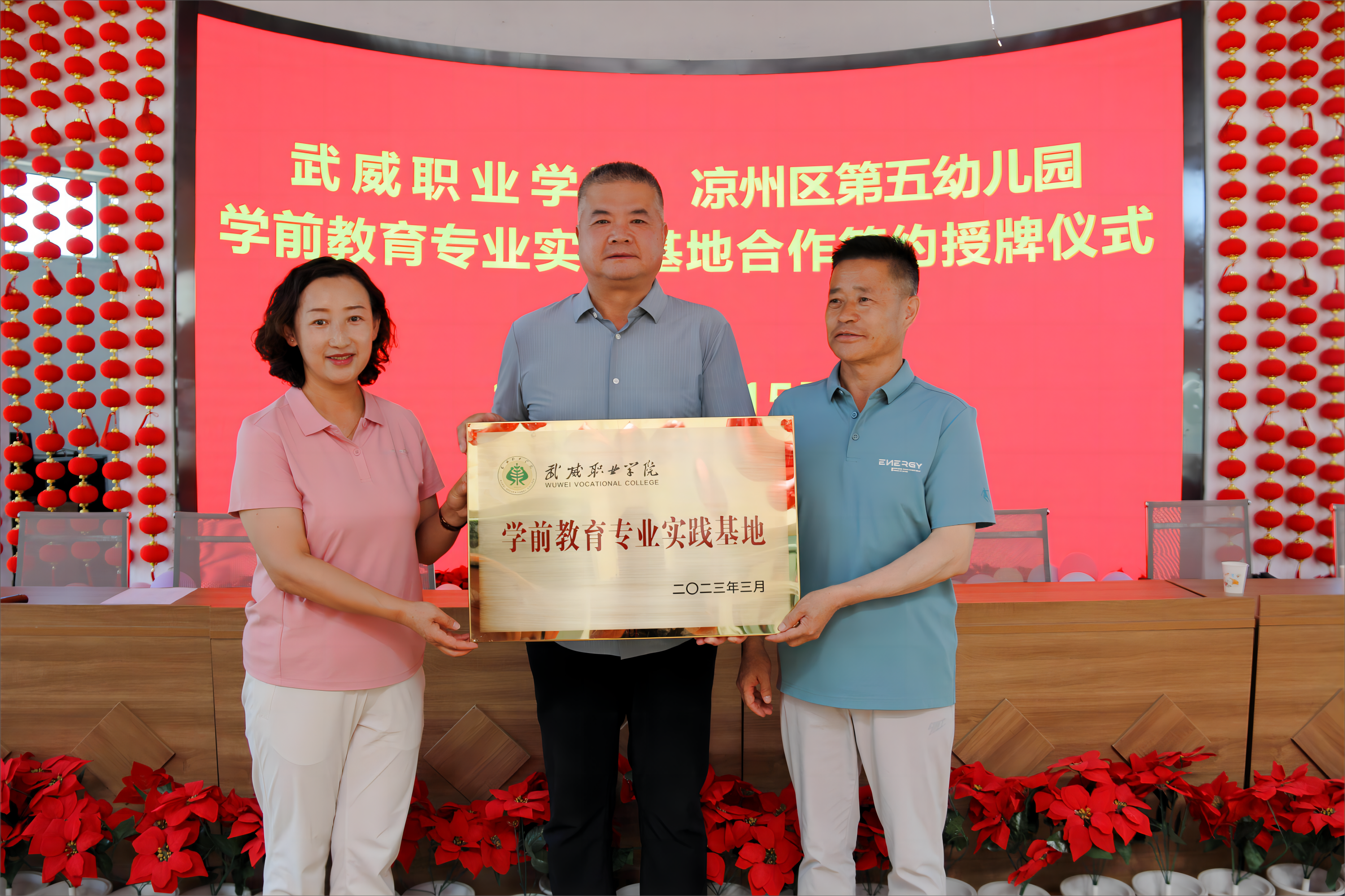 6月15日,武威職業(yè)學(xué)院學(xué)前教育專業(yè)實踐基地授牌儀式分別在武威市第二實驗幼兒園、涼州區(qū)第五幼兒園舉行。學(xué)校黨委委員、副校長王守云,武威市第二實驗幼兒園園長羅亞莉,涼州區(qū)第五幼兒園園長張俊山出席授牌儀式。藝術(shù)與教育學(xué)院教師代表,市區(qū)幼兒園領(lǐng)導(dǎo)班子成員及部分教師參加授牌儀式。