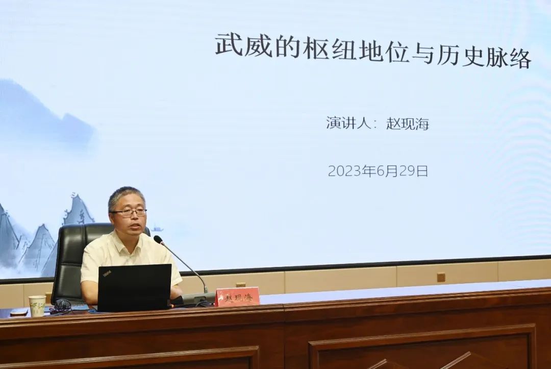 6月29日,2023年第二期《涼州講壇》在武威市開講,中國社會(huì)科學(xué)院古代史研究所古代通史研究室主任、研究員趙現(xiàn)海應(yīng)邀在武威職業(yè)學(xué)院作《武威的樞紐地位與歷史脈絡(luò)》的專題講座。市委宣傳部常務(wù)副部長(zhǎng)林艷軍主持。