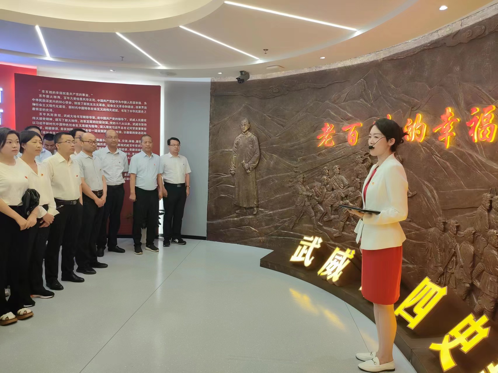 全體黨員懷著崇敬的心情,在講解員的引導(dǎo)下,大家有序參觀了黨性教育基地序廳、主廳、智慧黨建廳、紅色文創(chuàng)廳、尾廳和初心講堂。一件件實物、一幅幅圖片、一段段故事,把大家?guī)Щ氐侥嵌尾憠验煹膷槑V歲月,共同追憶了武威發(fā)展的光輝歷程和紅色歷史,對武威發(fā)展的輝煌歷程有了更加深入的了解和認(rèn)識,對共產(chǎn)黨人的初心和使命有了更深刻的理解和感悟。在初心講堂,黨員們共同觀看紅色專題片《先鋒之光》,重溫中國共產(chǎn)黨人為了建設(shè)新中國拋頭顱、灑熱血的崢嶸歲月。