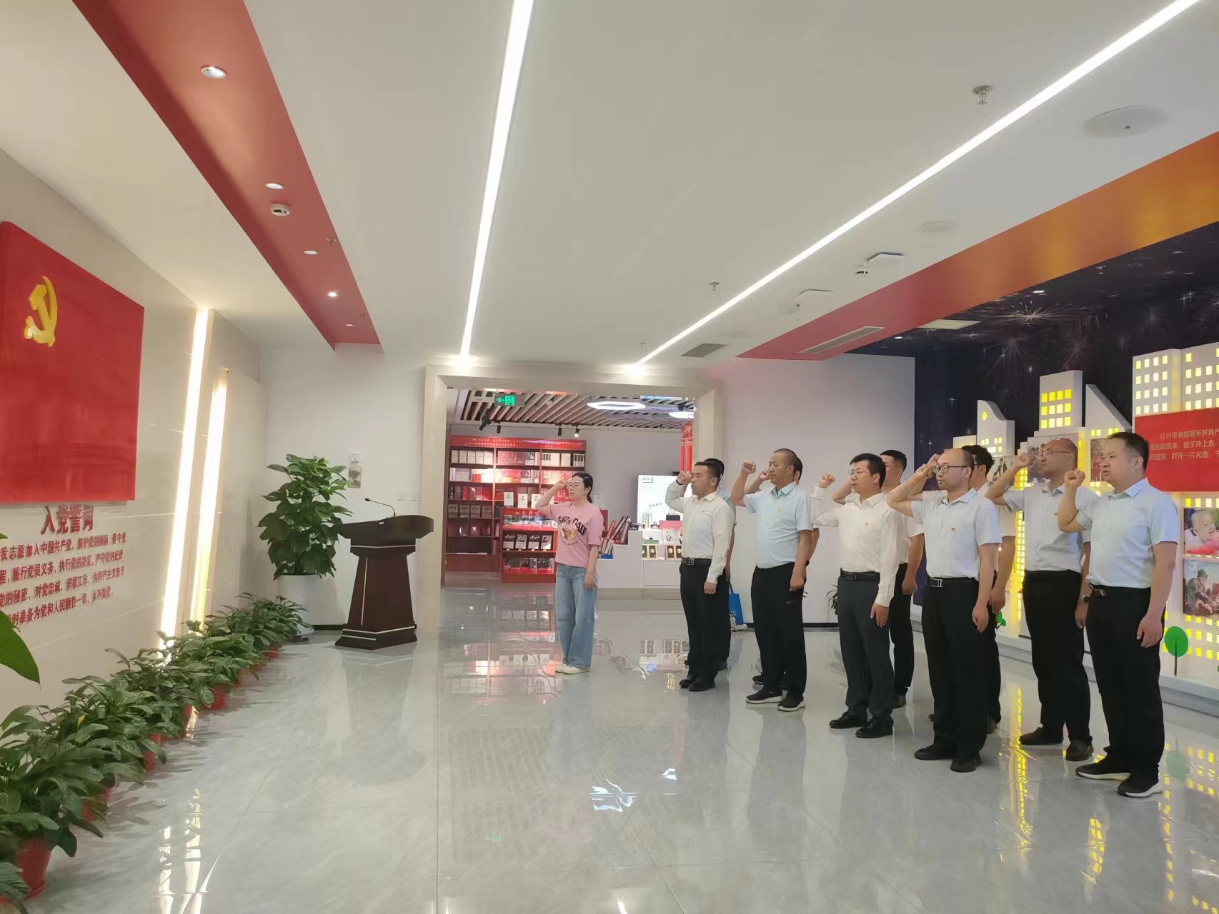 參觀結(jié)束后,在鮮紅的黨旗下,全體黨員舉起右拳,重溫入黨誓詞。一句句鏗鏘的誓言、一個個緊握的拳頭、一枚枚閃亮的黨徽,深情表達(dá)著對黨的無限熱愛和聽黨話、感黨恩的決心。