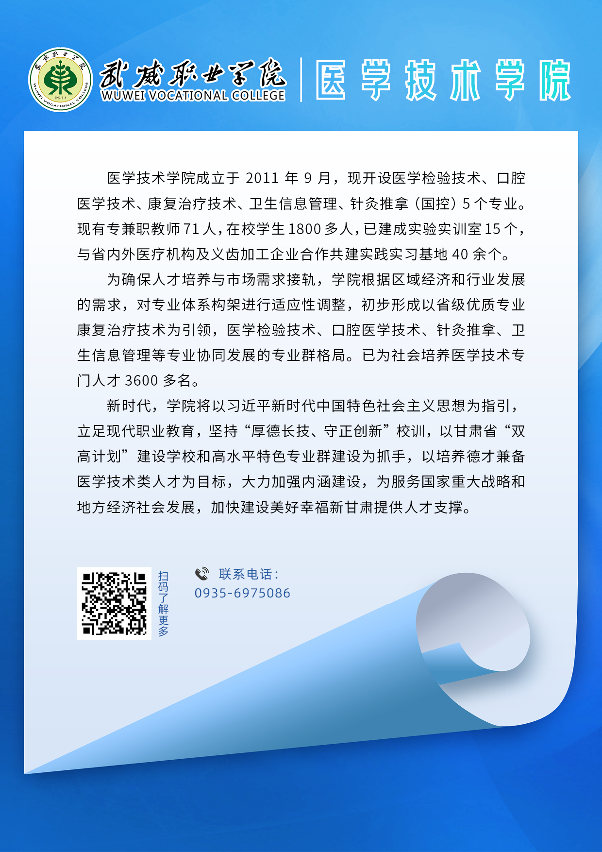 武威職業(yè)學(xué)院二級(jí)學(xué)院專業(yè)簡(jiǎn)介丨醫(yī)學(xué)技術(shù)學(xué)院