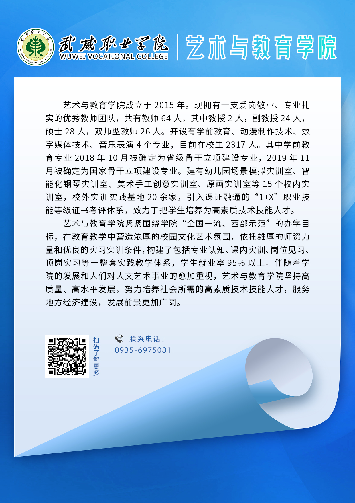 武威職業(yè)學院二級學院專業(yè)簡介丨藝術與教育學院
