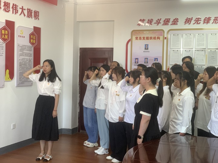 教師黨員趙文杰帶領全體預備黨員進行入黨宣誓,全體老黨員重溫入黨誓詞。黨員們集體面向黨旗,舉起右拳,跟隨領誓人宣誓,鄭重許下對黨的承諾,表達著自己為共產(chǎn)主義事業(yè)奮斗終身的決心。每位黨員都接受了一次深刻的思想洗禮,更加明確了新時代黨員的責任擔當。