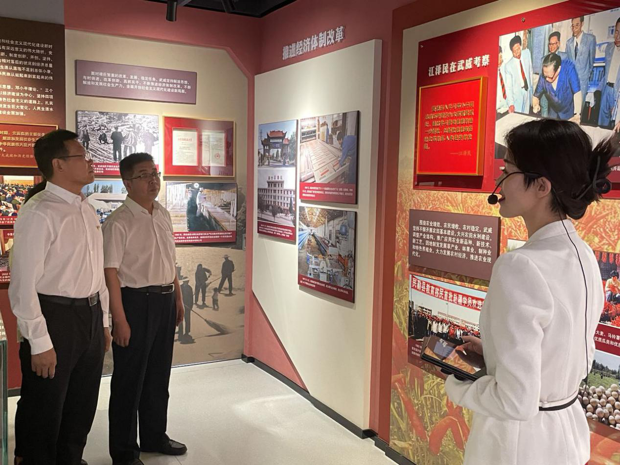 大家在講解員的講解下先后參觀了序廳、主廳、智慧黨建廳、紅色文創(chuàng)廳、尾廳和初心講堂,并觀看了紅色專題片。展廳全景式展現(xiàn)了武威百年輝煌黨史和黨的十八大以來(lái),尤其是習(xí)近平總書記視察甘肅三年以來(lái)武威高質(zhì)量發(fā)展的重大成就。在講解員的帶領(lǐng)下,全體黨員重溫了武威的發(fā)展史和中國(guó)共產(chǎn)黨人為建設(shè)新中國(guó)拋頭顱、灑熱血的崢嶸歲月。大家一邊觀看,一邊聆聽(tīng)關(guān)于革命先烈的光輝事跡和紅色故事,接受革命傳統(tǒng)教育的洗禮,從黨的百年偉大奮斗歷程中汲取繼續(xù)奮斗前進(jìn)的智慧和力量。