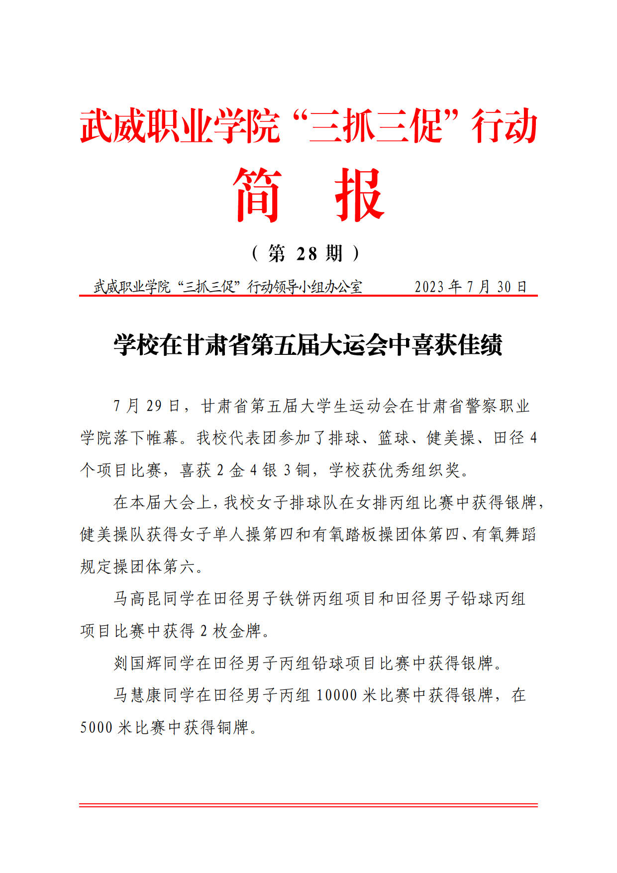 簡報第28期:學(xué)校在甘肅省第五屆大運(yùn)會中喜獲佳績