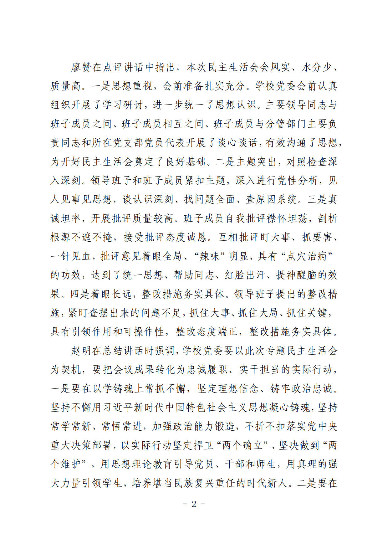 簡報第29期:學(xué)校召開學(xué)習(xí)貫徹習(xí)近平新時代中國特色社會主義思想主題教育專題民主生活會
