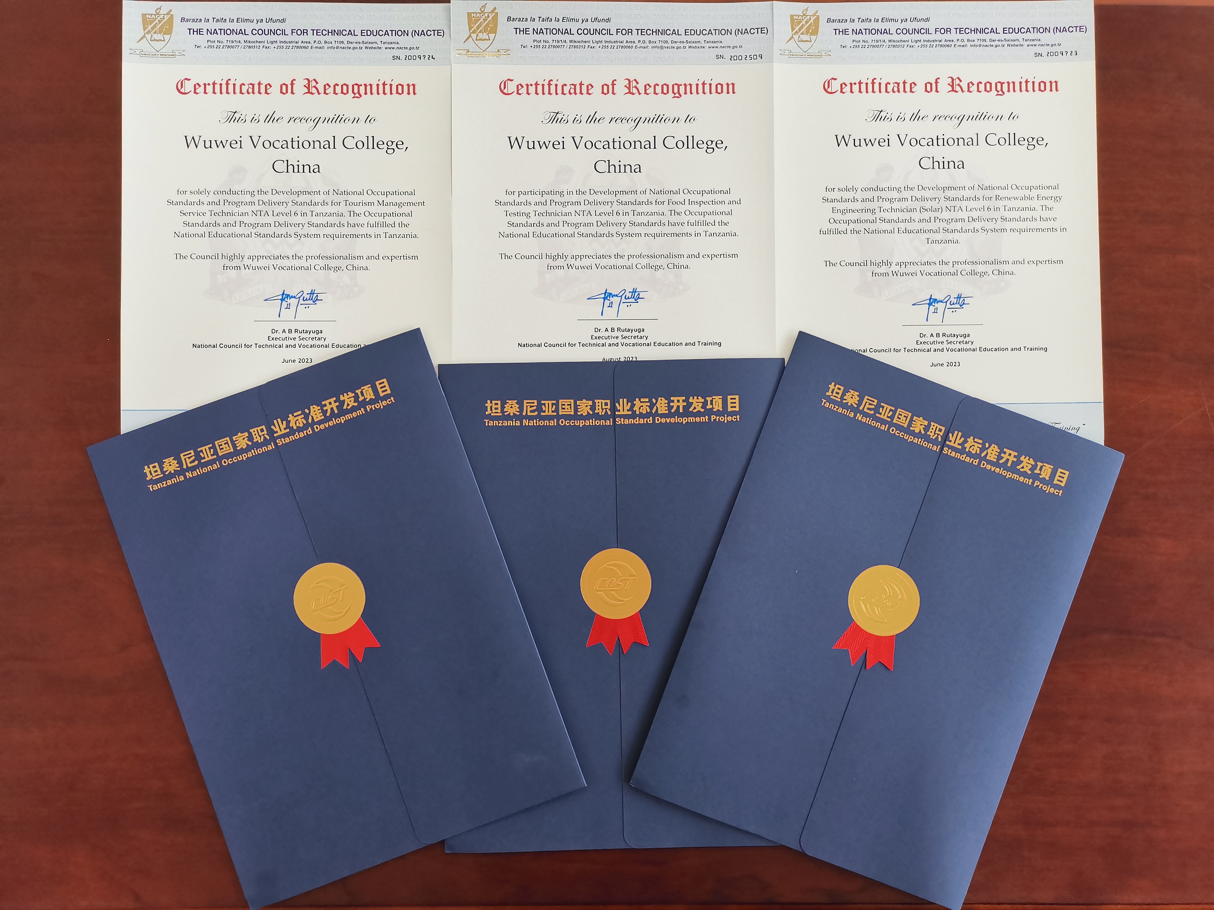 2022年9月,學(xué)校推薦旅游管理服務(wù)技術(shù)員6級、新能源工程技術(shù)員(太陽能)6級、食品檢驗檢測員6級三項職業(yè)標準申報第二批“坦桑尼亞國家職業(yè)標準開發(fā)項目”并成功獲得立項。項目啟動建設(shè)以來,在中非職教聯(lián)盟、中坦雙方專家工作組、坦桑尼亞國家職業(yè)教育委員會的指導(dǎo)下,在學(xué)校堅強有力領(lǐng)導(dǎo)下,經(jīng)濟管理學(xué)院、中科低碳新能源學(xué)院、現(xiàn)代農(nóng)業(yè)學(xué)院各自成立工作專班,結(jié)合實際制定項目實施計劃、實施方案,建立專項工作小組和工作機制,強化過程管理,確保后勤服務(wù),與坦桑尼亞國家職業(yè)教育委員會專家組進行多輪次線上商討,經(jīng)過近一年的辛勤工作,形成了符合中國標準,滿足坦桑尼亞需求的職業(yè)標準,并配套提供與之相關(guān)的專業(yè)教學(xué)標準,高質(zhì)量高標準完成項目建設(shè)。學(xué)校項目工作受到中非職教聯(lián)盟、坦桑尼亞國家職業(yè)教育委員會的高度肯定和贊揚。