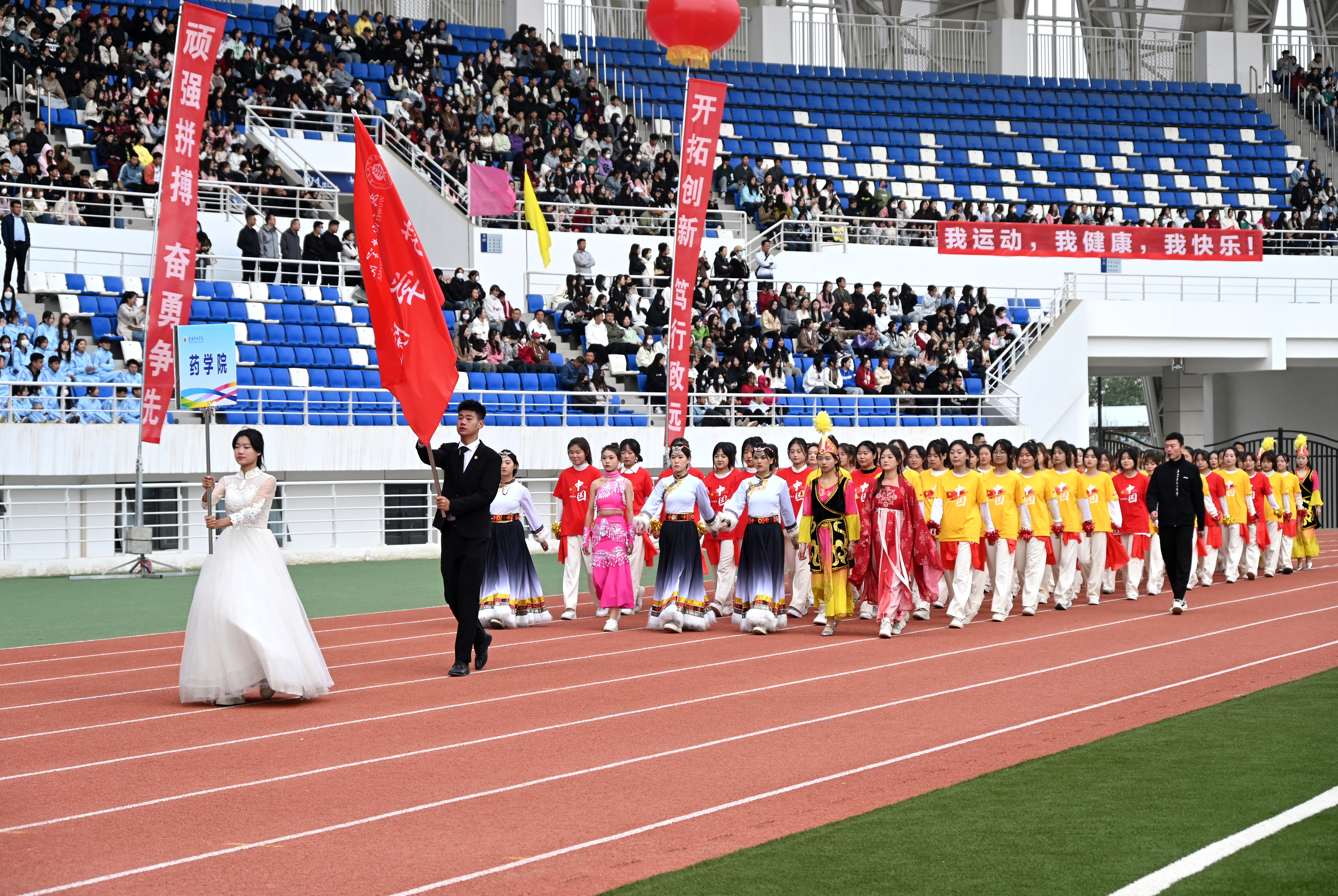 伴隨著雄壯激越的運(yùn)動(dòng)員進(jìn)行曲,國(guó)旗護(hù)衛(wèi)隊(duì)、彩旗隊(duì)、裁判員隊(duì)伍、各二級(jí)學(xué)院方陣依次入場(chǎng),隊(duì)列步伐整齊有力,口號(hào)堅(jiān)定嘹亮,充分展示了師生良好的精神風(fēng)貌。