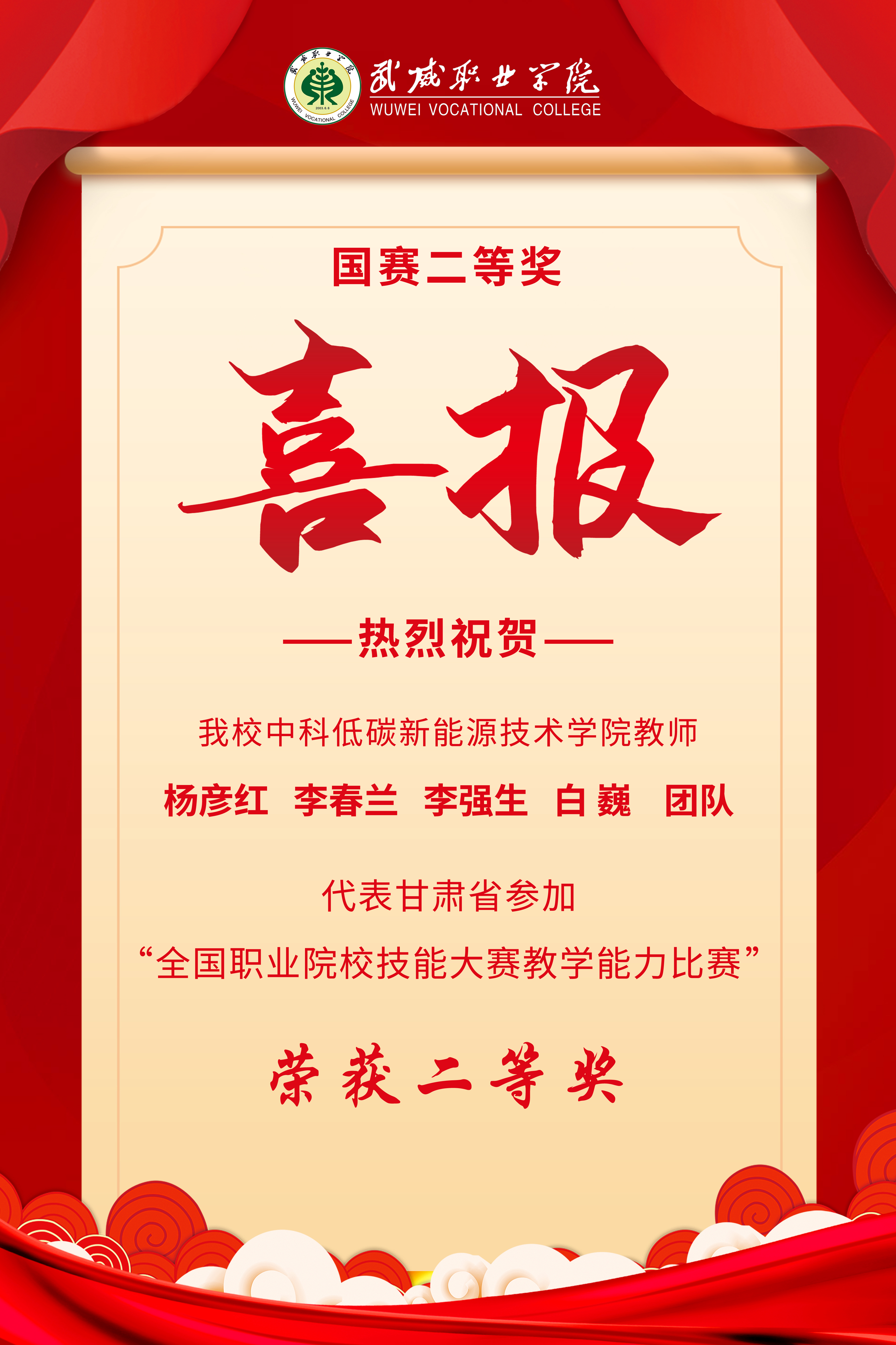 -- ——我校楊彥紅團隊喜獲全國職業(yè)院校技能大賽教學(xué)能力比賽二等獎