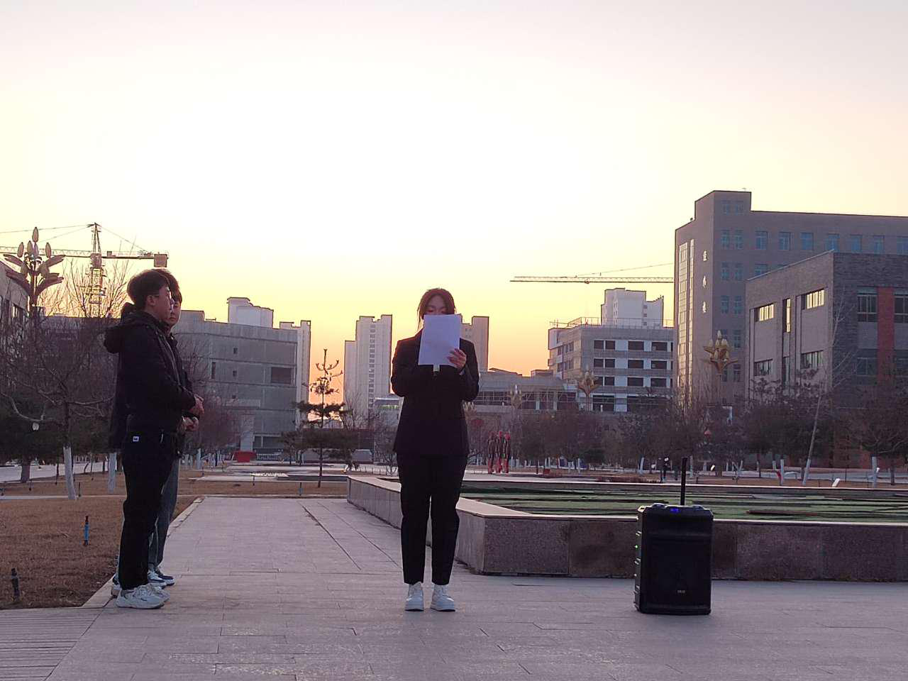 學(xué)生代表張營發(fā)言,開學(xué)已經(jīng)第三周,我們每個人都要有風險意識,要積極參與應(yīng)急演練和應(yīng)急培訓(xùn),掌握應(yīng)急處置知識和技能,切實提升校園應(yīng)急能力。只有這樣,當面對突如其來發(fā)生的事故時,我們才能化被動為主動,冷靜快速有效應(yīng)對,避免事故的進一步擴大,保護自己和他人的安全。她號召同學(xué)們,在安全面前,我們都不是局外人,每個人都是安全的“第一責任人”。