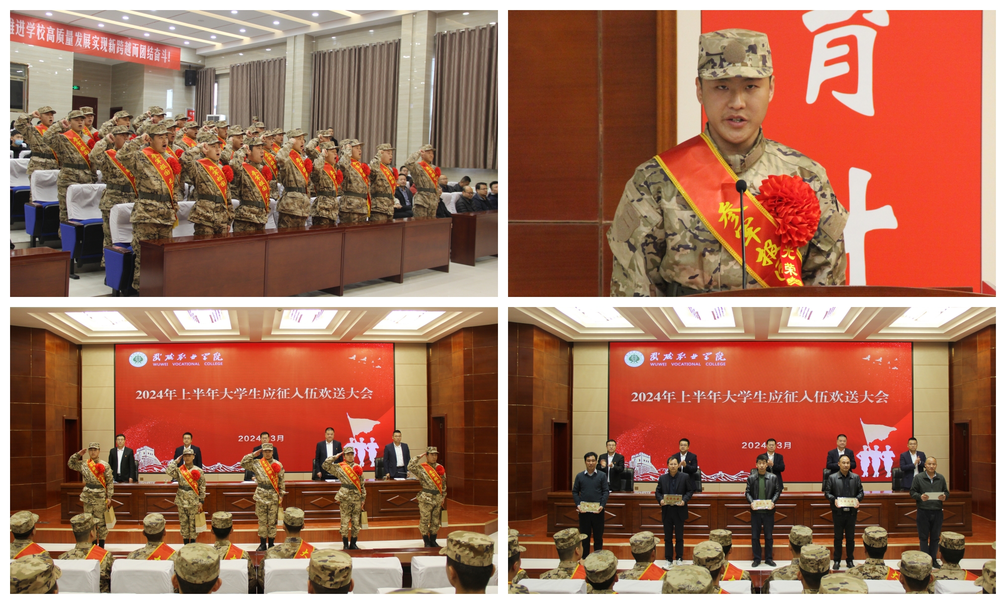 學(xué)校熱烈歡送2024年上半年應(yīng)征入伍大學(xué)生