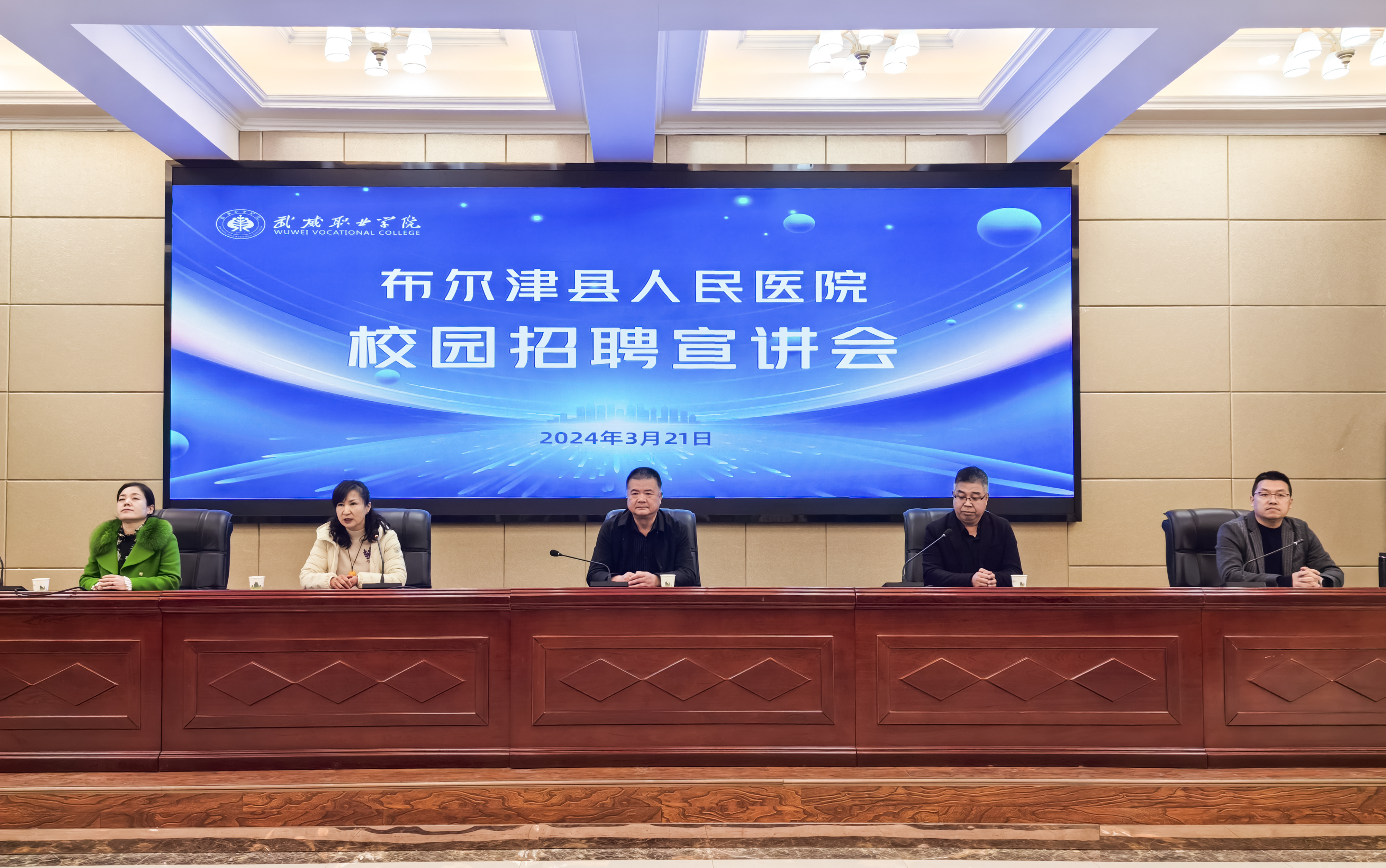 3月21日,布爾津縣人民醫(yī)院護(hù)理部主任何淑紅、重癥醫(yī)學(xué)科護(hù)士長(zhǎng)謝永紅來(lái)我校開展校園招聘宣講活動(dòng)。學(xué)校黨委委員、副校長(zhǎng)王守云,學(xué)校招生就業(yè)處、合作教育辦負(fù)責(zé)人董鵬以及護(hù)理學(xué)院負(fù)責(zé)同志參加。