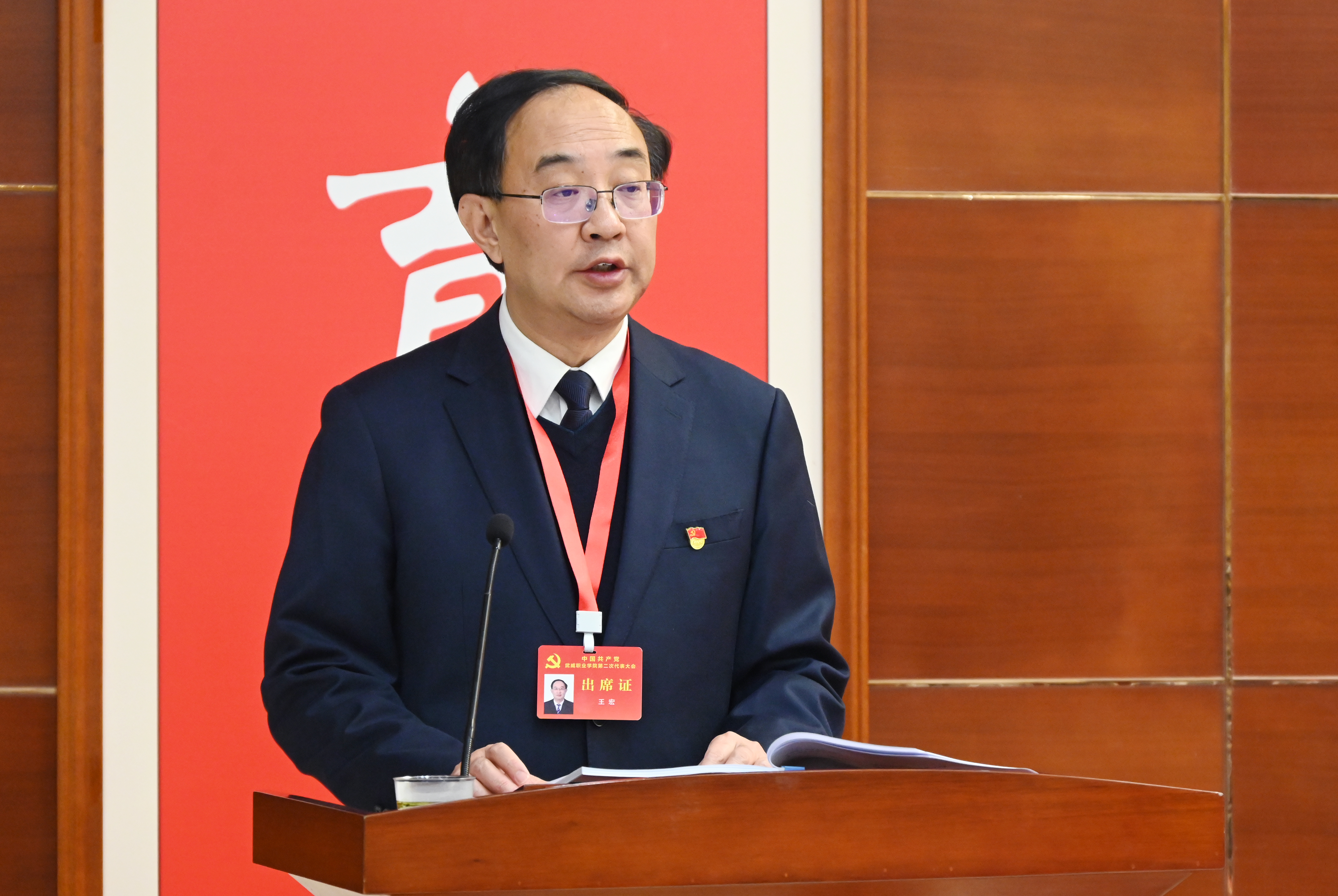 王宏同志代表中國共產(chǎn)黨武威職業(yè)學(xué)院第一屆委員會向大會作報(bào)告