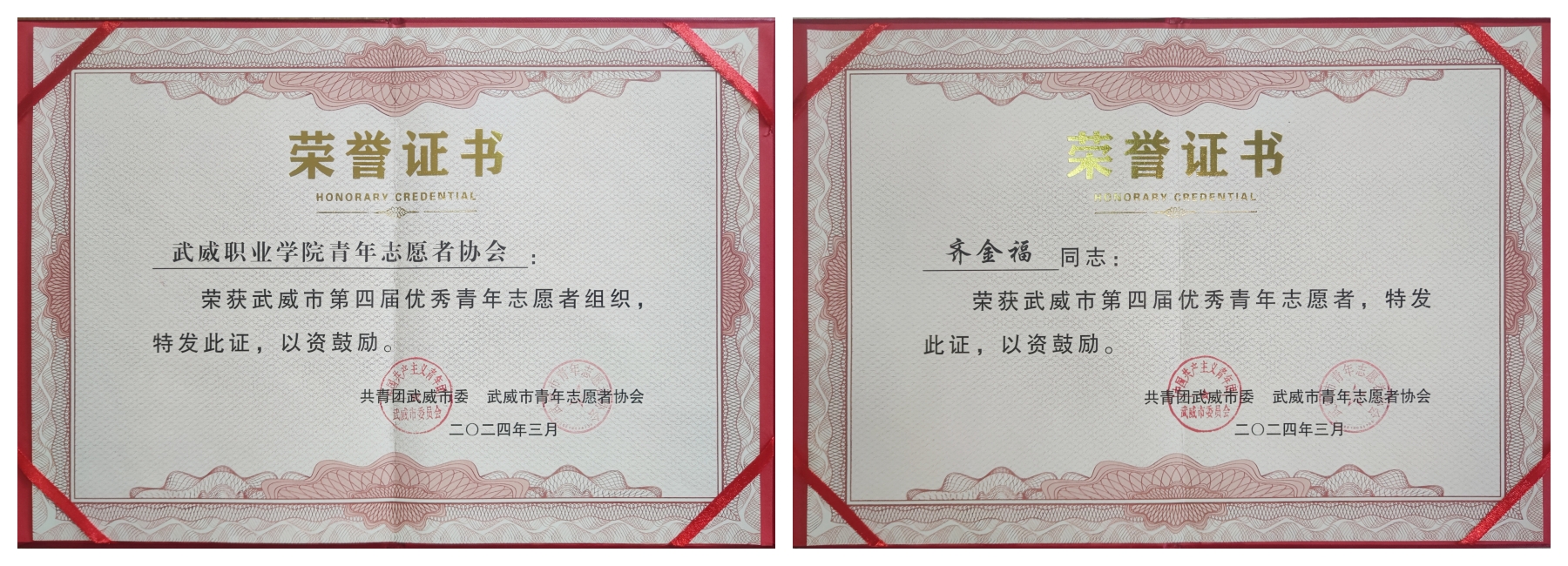 會議全面總結(jié)了2023年全市青年志愿服務工作情況,對獲得武威市第四屆優(yōu)秀志愿者組織和個人的集體和單位頒發(fā)榮譽證書。我校青年志愿者協(xié)會被評為“優(yōu)秀志愿者組織”,工程技術學院學生齊金福被評為“優(yōu)秀志愿者”。