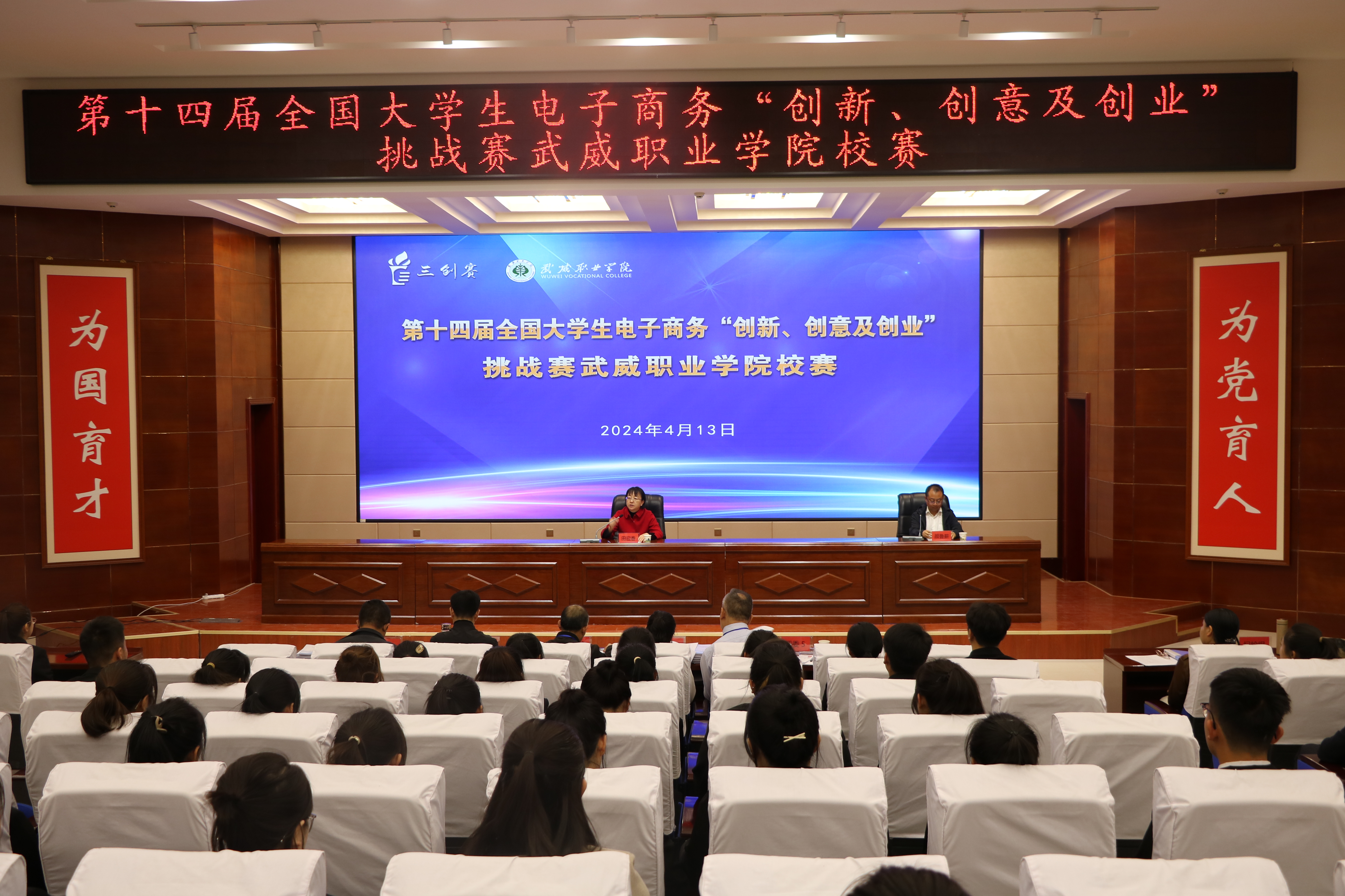 4月13日,我校在菁英廳成功舉辦第十四屆全國大學(xué)生電子商務(wù)“創(chuàng)新、創(chuàng)意及創(chuàng)業(yè)”挑戰(zhàn)賽校賽及開幕式。學(xué)校黨委委員、副校長田迎春出席開幕式,專家評委、參賽選手等200人參加。