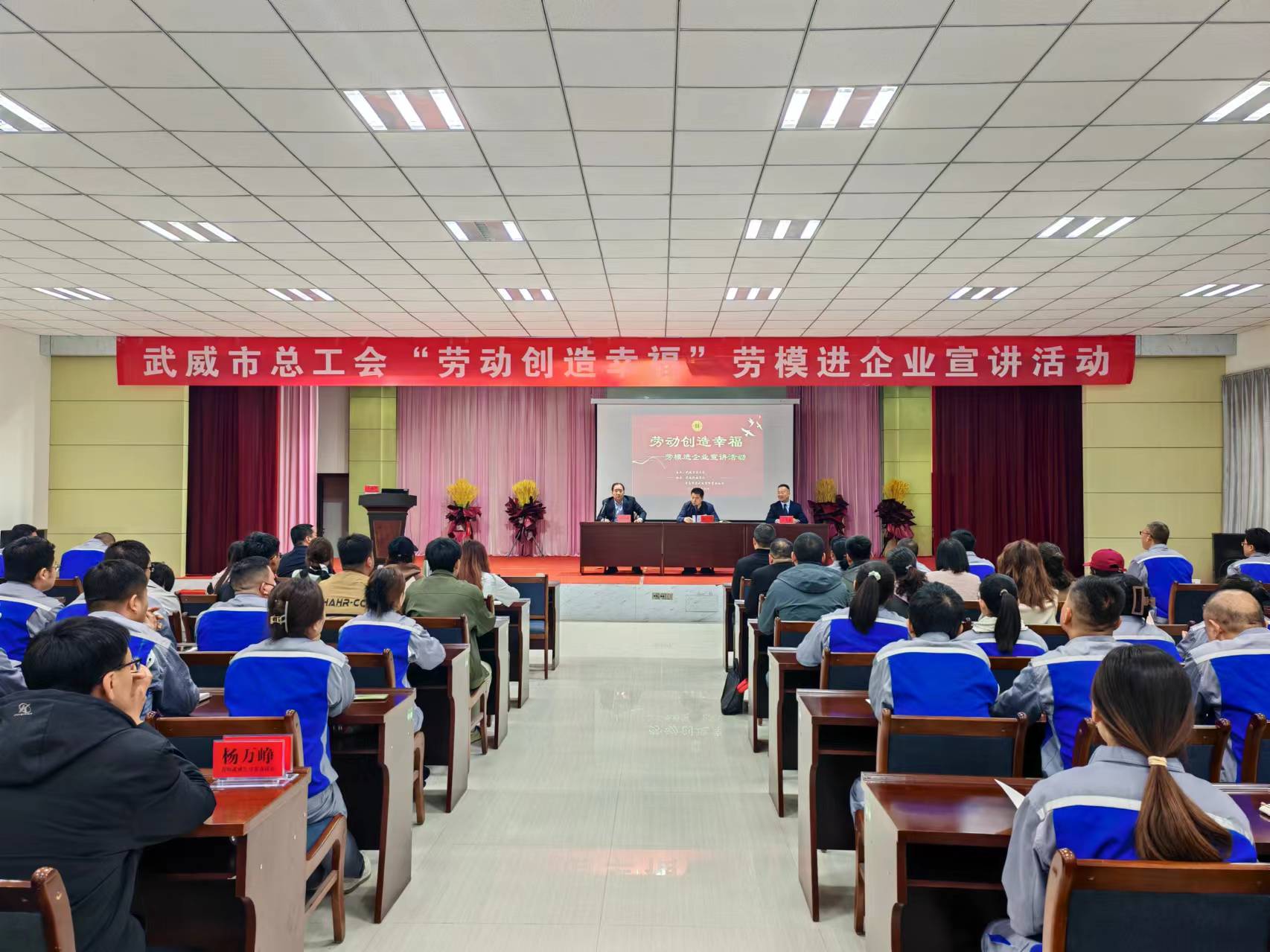 為弘揚(yáng)新時(shí)代的勞模精神、勞動(dòng)精神、工匠精神,進(jìn)一步營(yíng)造勞動(dòng)最光榮、勞動(dòng)最崇高、勞動(dòng)最偉大、勞動(dòng)最美麗的濃厚氛圍,4月30日,市總工會(huì)、學(xué)校聯(lián)合開(kāi)展的“勞動(dòng)創(chuàng)造幸?!眲谀_M(jìn)企業(yè)宣講活動(dòng)走進(jìn)青島啤酒武威有限責(zé)任公司,青島啤酒武威有限責(zé)任公司職工代表、學(xué)校勞模工匠技術(shù)服務(wù)團(tuán)隊(duì)120多人參加活動(dòng)。