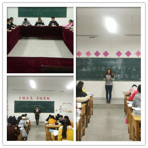 為深入學(xué)習(xí)宣傳十八屆六中全會(huì)精神,引導(dǎo)廣大團(tuán)員青年準(zhǔn)確把握全會(huì)的精神實(shí)質(zhì)和深刻內(nèi)涵,藥學(xué)系團(tuán)總支結(jié)合“兩學(xué)一做”學(xué)習(xí)教育和貫徹落實(shí)武威市第四次黨代會(huì)精神,于12月7日晚,在明遠(yuǎn)樓組織各班團(tuán)支部開展了學(xué)習(xí)黨的十八屆六中全會(huì)精神主題團(tuán)會(huì)。團(tuán)會(huì)由各班團(tuán)支部書記主持,會(huì)議傳達(dá)了十八屆六中全會(huì)精神和武威市第四次黨代會(huì)精神,領(lǐng)學(xué)了《中國共產(chǎn)黨第十八屆中央委員會(huì)第六次全體會(huì)議公報(bào)》內(nèi)容。