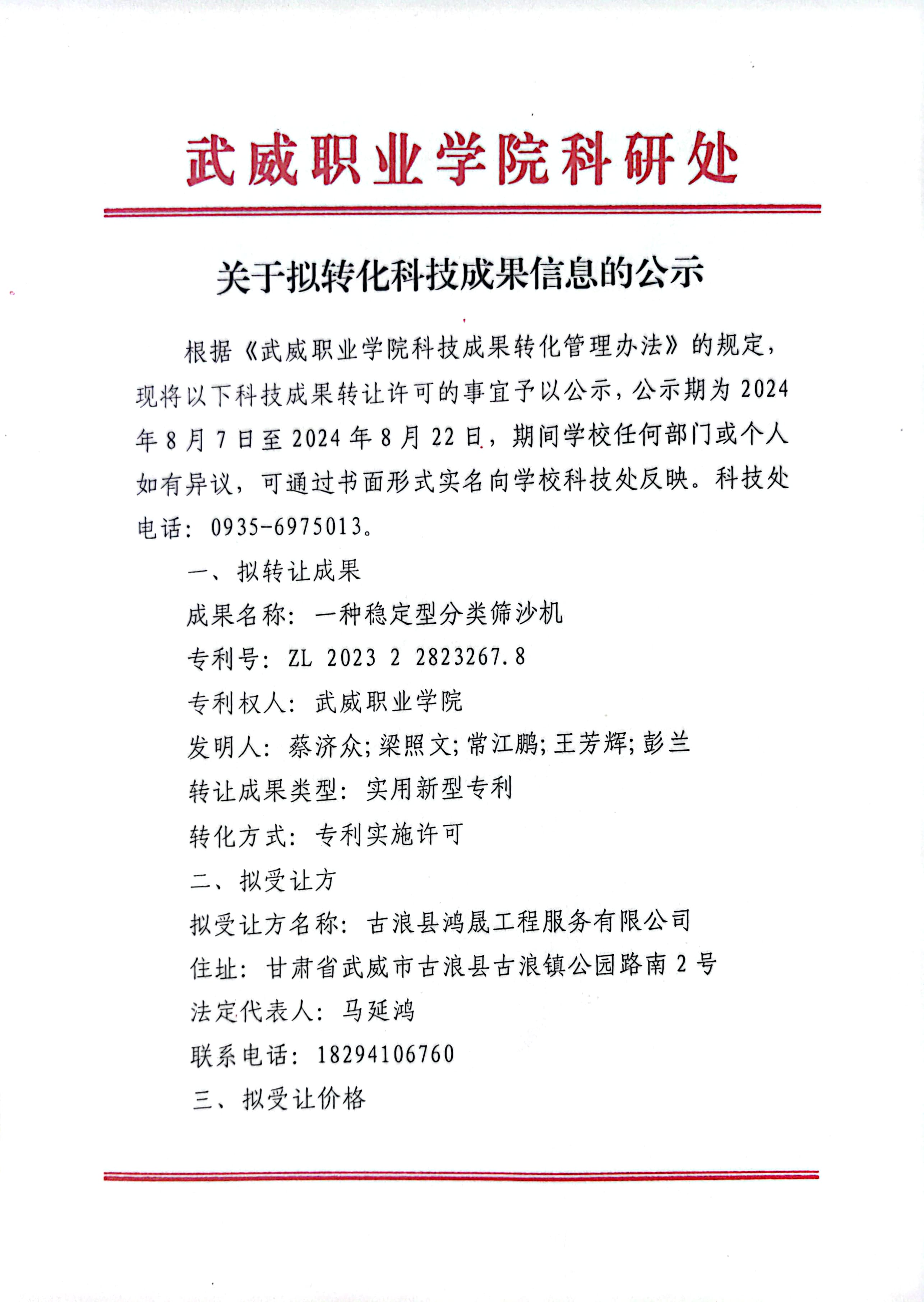 關(guān)于擬轉(zhuǎn)化科技成果信息的公示