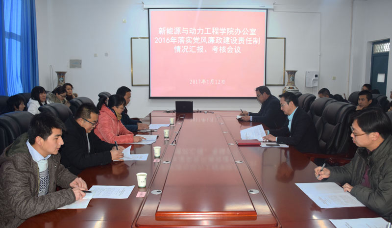 1月12日下午,學(xué)院副院長田迎春帶領(lǐng)學(xué)院第六考核組,對(duì)新能源與動(dòng)力工程學(xué)院辦公室2016年度黨風(fēng)廉政建設(shè)和反腐敗工作進(jìn)行了全面檢查考核。新能源與動(dòng)力工程學(xué)院全體教職工參加了會(huì)議。