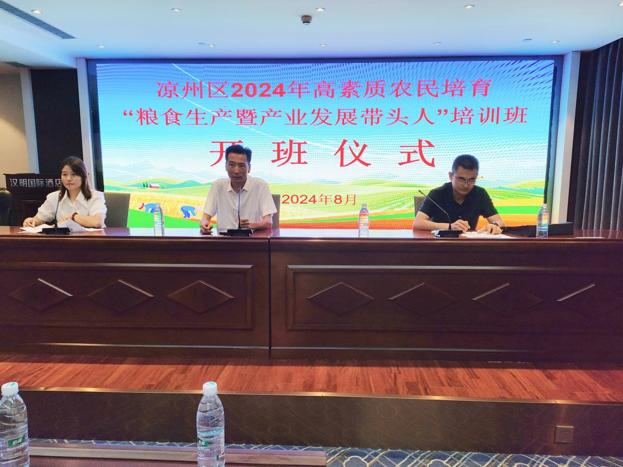8月14日上午,由涼州區(qū)農(nóng)業(yè)農(nóng)村局主辦,我校承辦的涼州區(qū)2024年高素質(zhì)農(nóng)民培育“糧食生產(chǎn)暨產(chǎn)業(yè)發(fā)展帶頭人”培訓(xùn)班順利開班,來自全區(qū)的100名農(nóng)民學(xué)員參加培訓(xùn)學(xué)習(xí)。