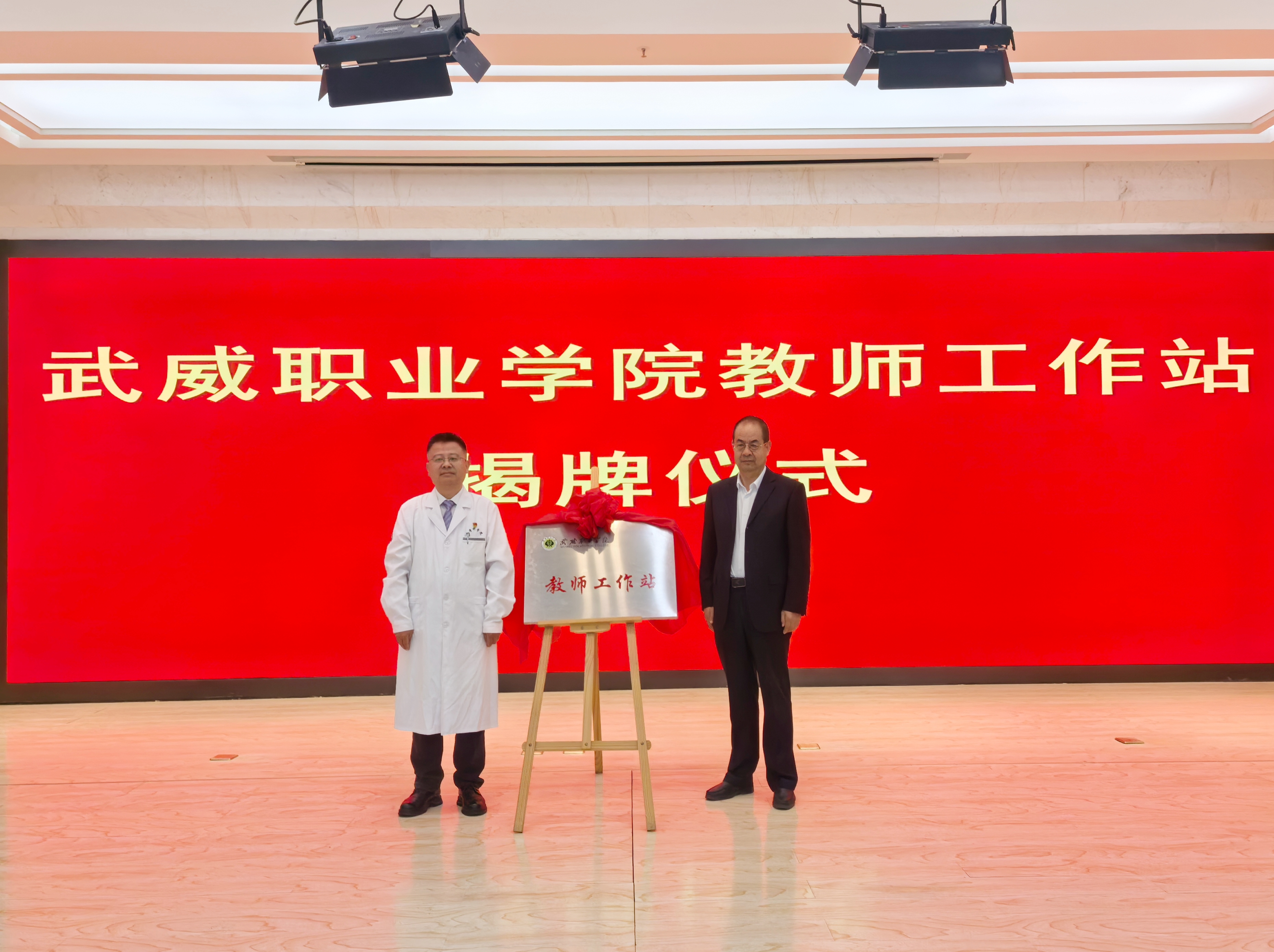 翟存祥和聶蓬為“武威職業(yè)學(xué)院教師工作站”揭牌