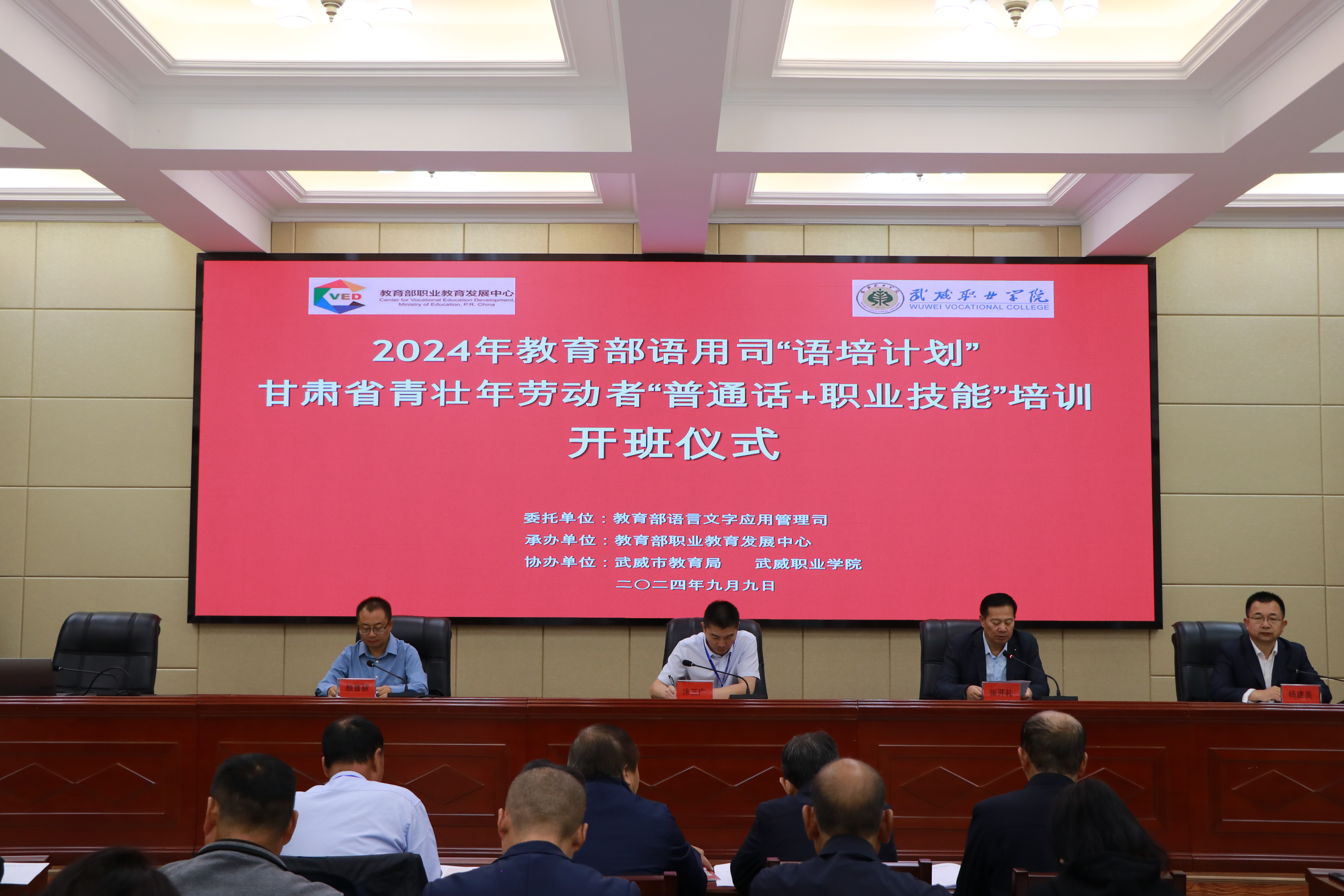 9月9日上午,2024年教育部語用司“語培計劃”甘肅省青壯年勞動者“普通話+職業(yè)技能”培訓班在我校正式開班。本次培訓是深入貫徹黨的二十大精神和二十屆三中全會精神,根據(jù)教育部語用司《關于實施2024年國家通用語言文字示范性培訓計劃的通知》,受教育部語用司委托,由教育部職業(yè)教育發(fā)展中心承辦、武威市教育局、學校共同協(xié)辦。本次培訓為期5天,共有來自武威市三縣一區(qū)的50余名學員參加。培訓以“語言鋪路,技能致富”為主題,培訓內(nèi)容聚焦當?shù)剞r(nóng)業(yè)種植技術技能和畜牧業(yè)養(yǎng)殖技能開展,以古浪“紅禿頭”小麥、民勤蜜瓜等特色農(nóng)產(chǎn)品的栽培養(yǎng)殖技術為主線,設計了“普通話+職業(yè)技能”為主題的課程內(nèi)容,邀請了國家級普通話測試員、甘肅省農(nóng)業(yè)科學院專家、武威市農(nóng)科所專家等組成的專家團隊。
