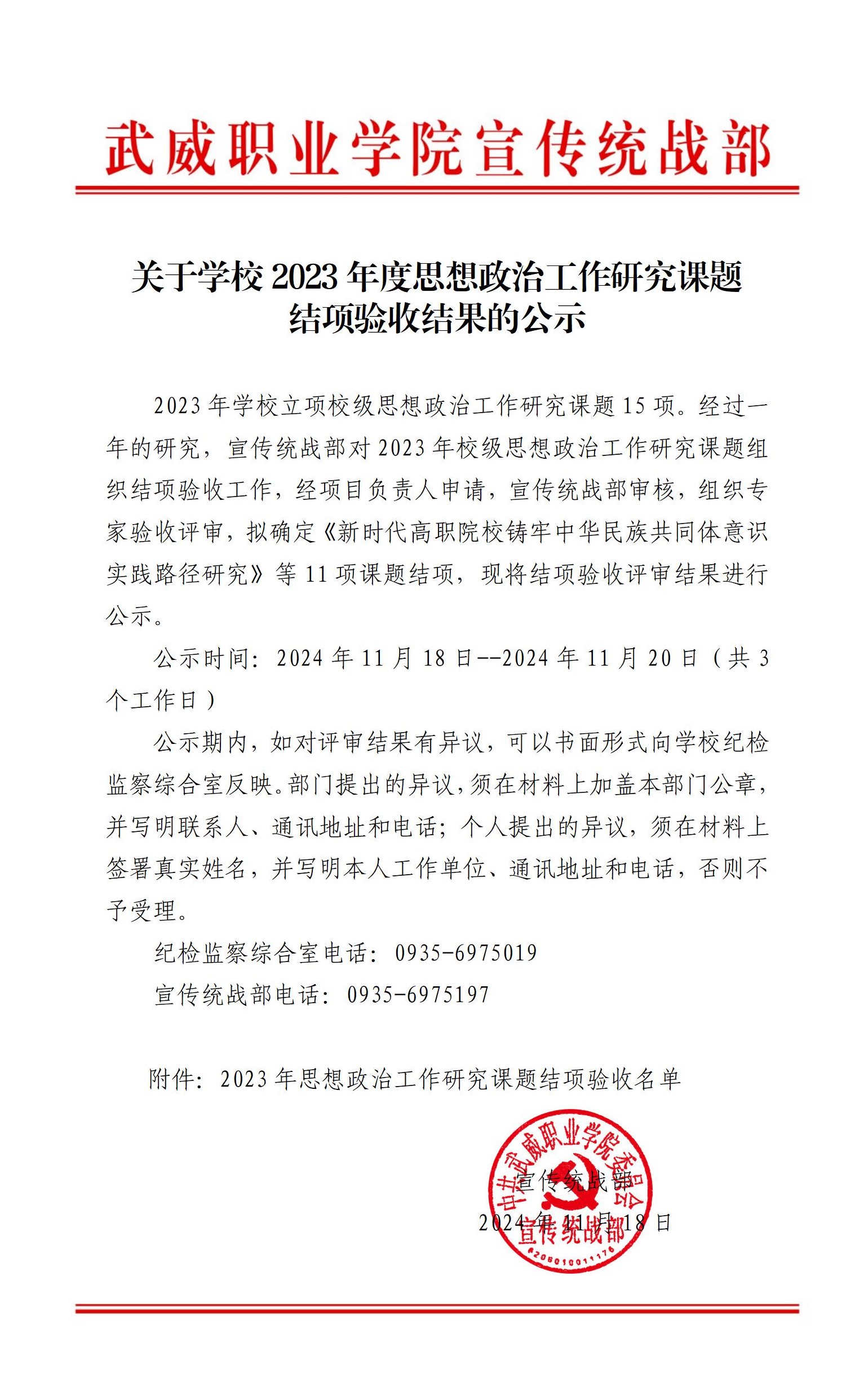關(guān)于學(xué)校2023年度思想政治工作研究課題結(jié)項(xiàng)驗(yàn)收結(jié)果的公示