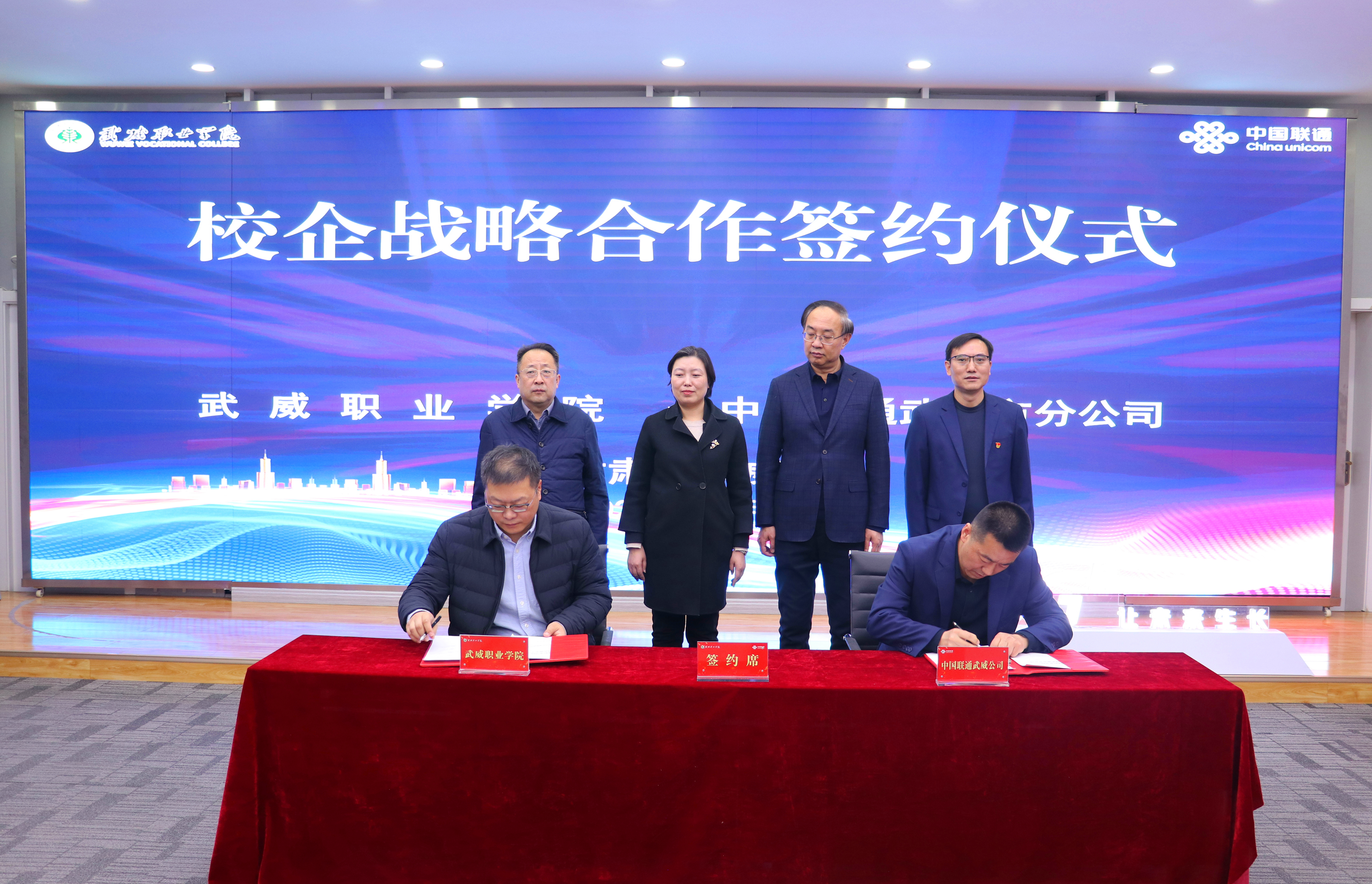 雙方簽署《武威職業(yè)學(xué)院與中國(guó)聯(lián)通武威市分公司校企戰(zhàn)略合作協(xié)議》。
